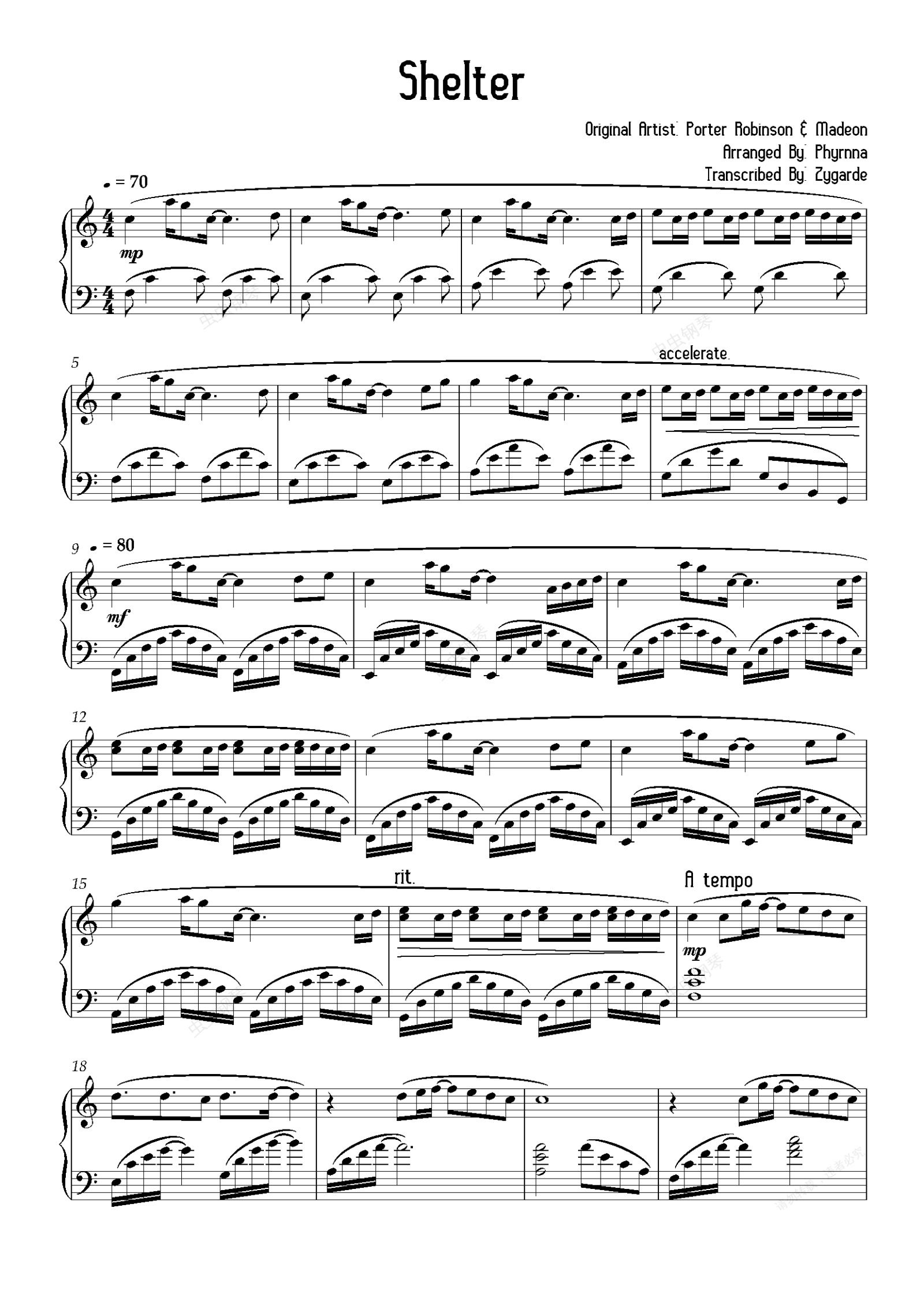 钢琴谱:庇护所(Shelter)