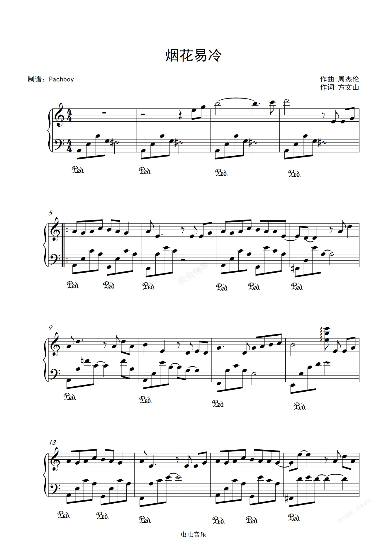 钢琴谱:烟花易冷【完美独奏】周杰伦