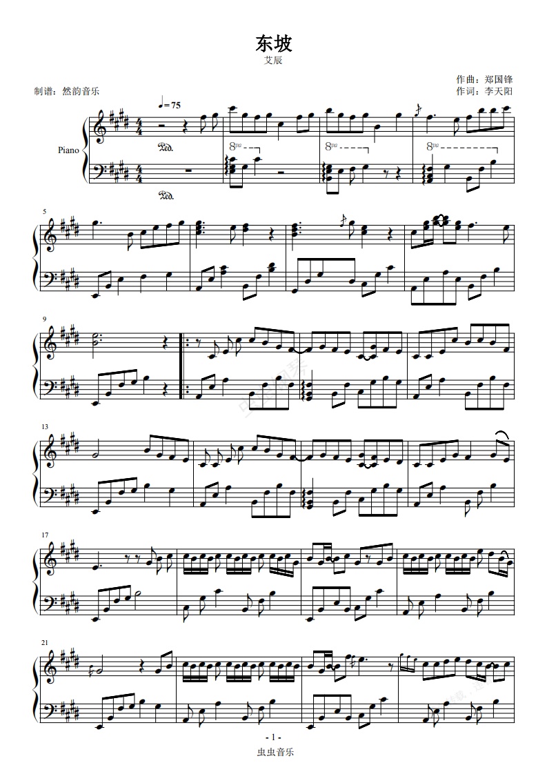 钢琴谱:【然韵音乐】东坡-艾辰 完美独奏