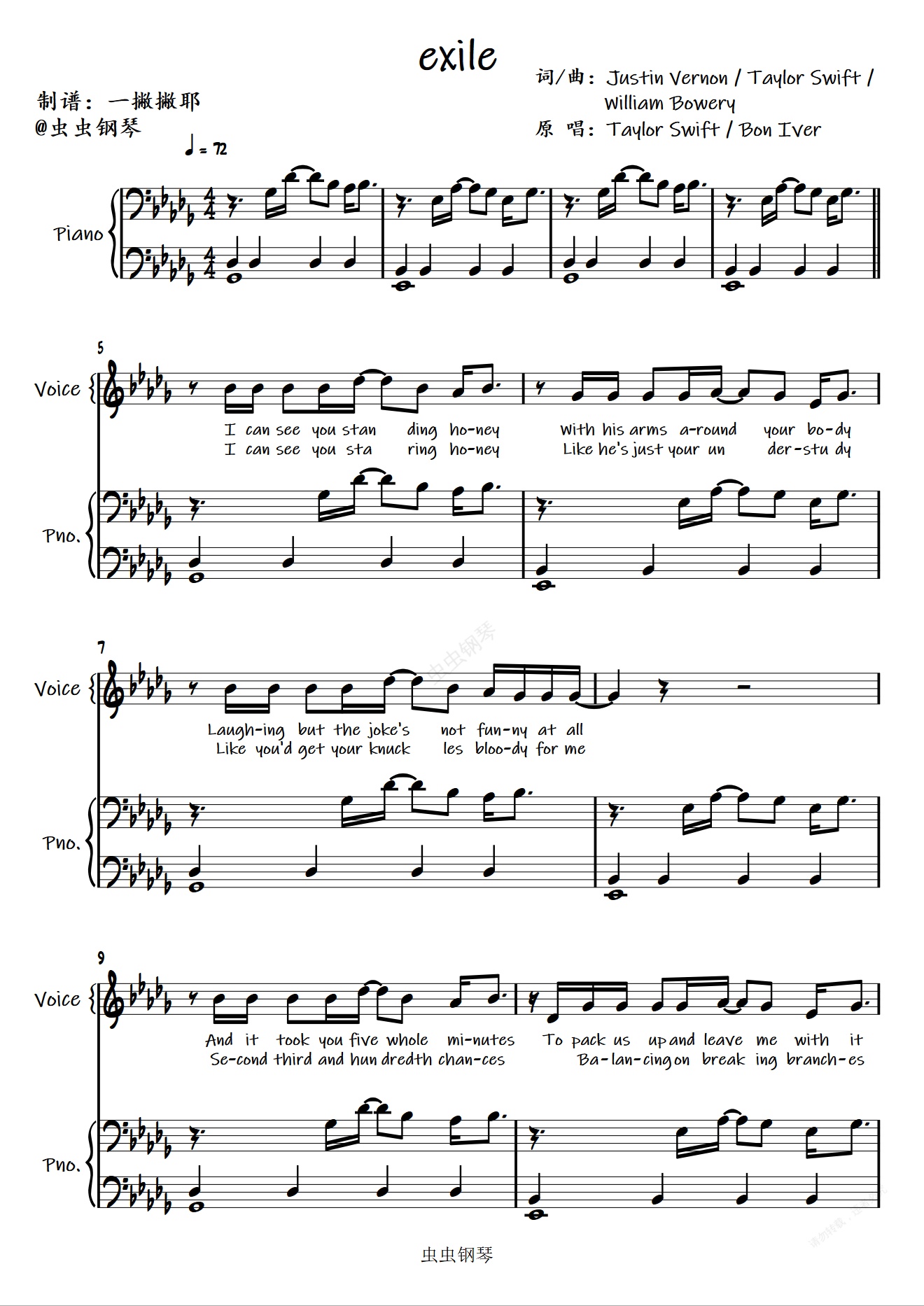 钢琴谱:exile【弹唱(附和声)谱】泰勒·斯威夫特Taylor Swift霉霉folklore「一撇撇耶」