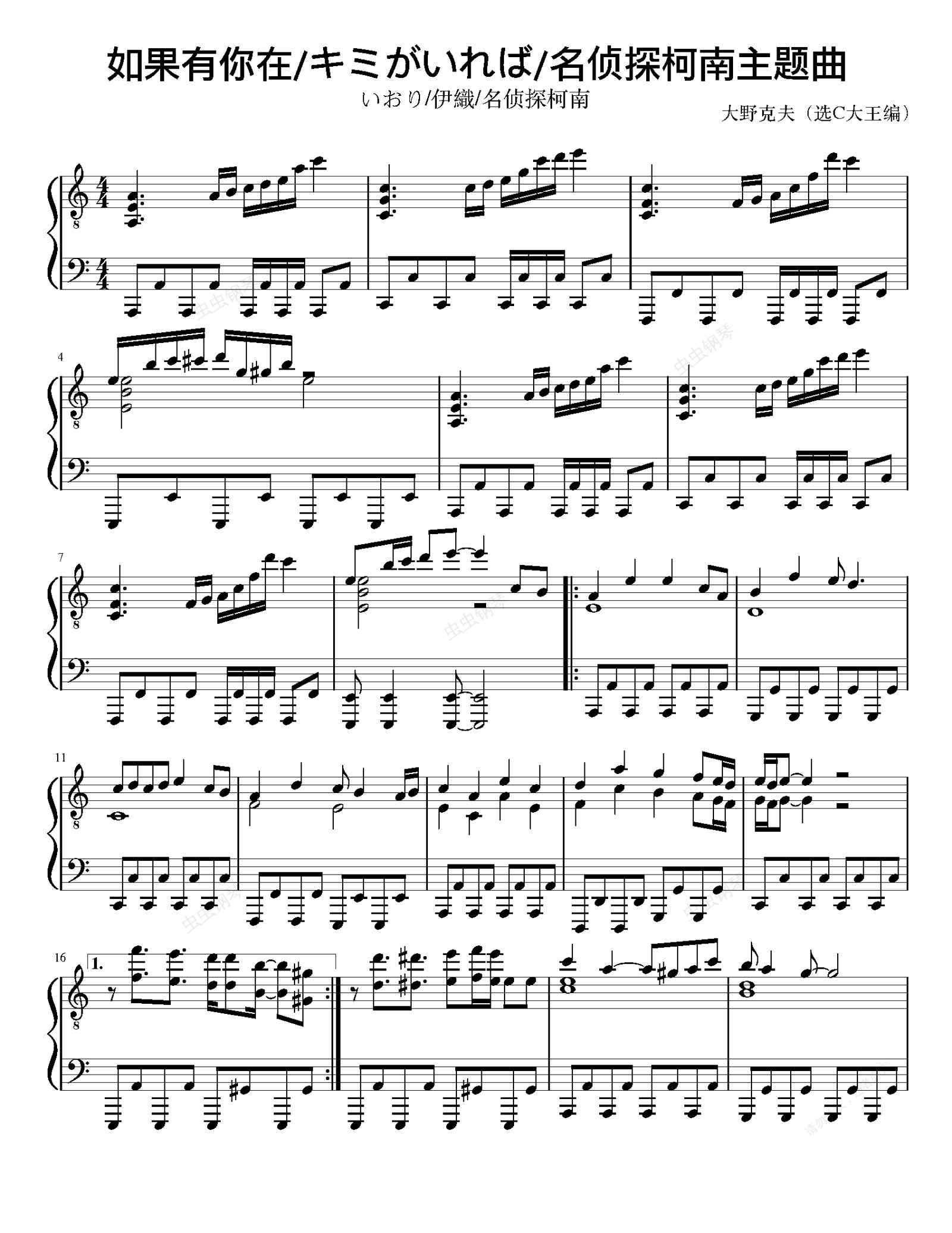 钢琴谱:如果有你在,キミがいれば,名侦探柯南主题曲