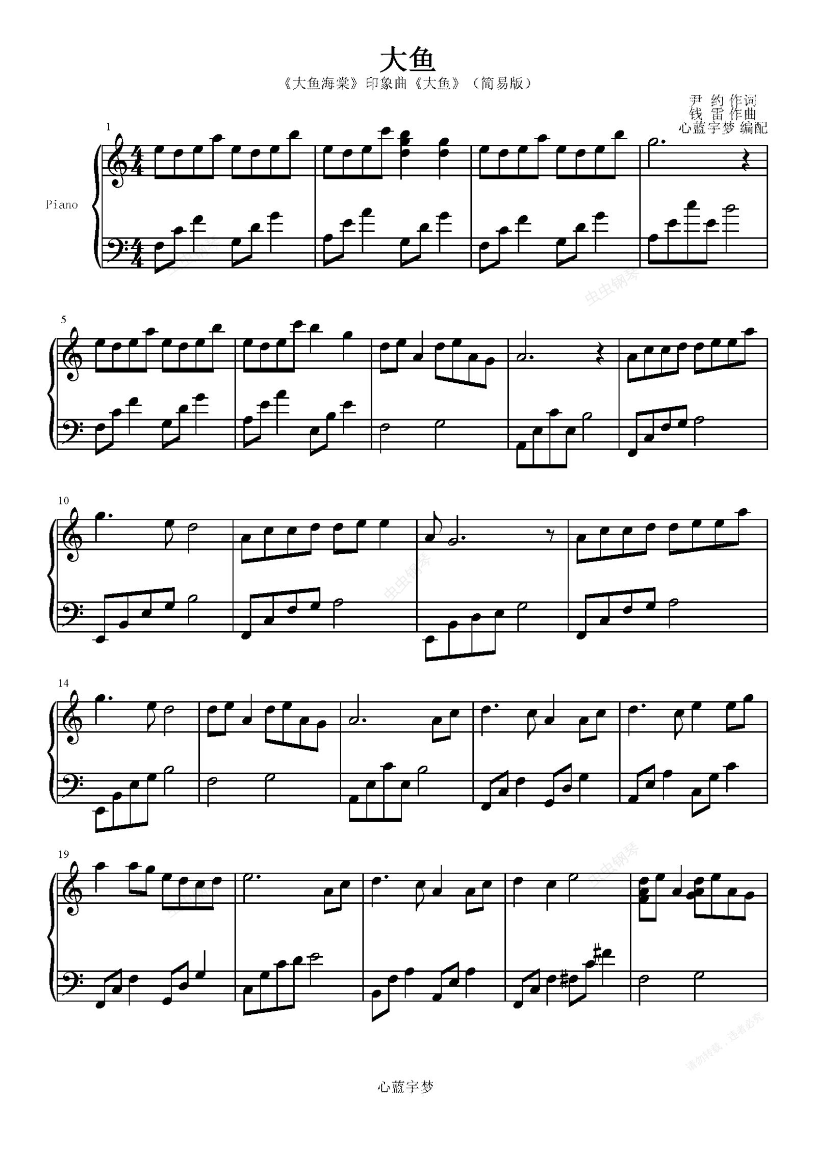 钢琴谱:大鱼-周深 C调简易版