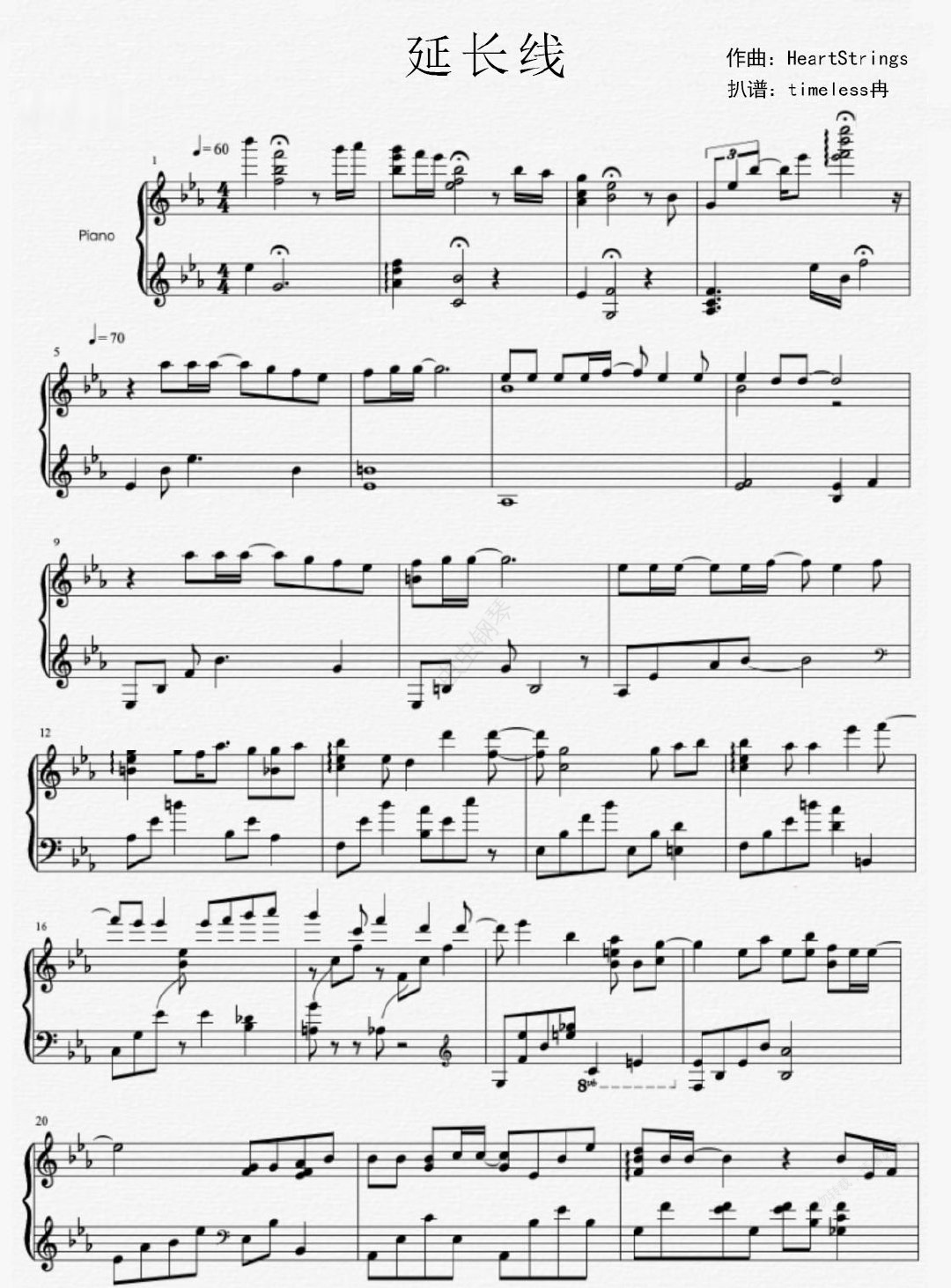 钢琴谱:延长线-HeartStrings(钢琴版)