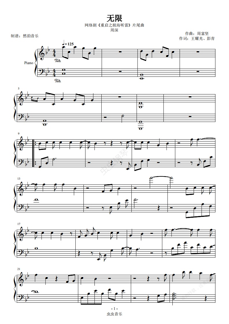 钢琴谱:【然韵音乐】无限-周深 《重启之极海听雷》片尾曲 完美独奏