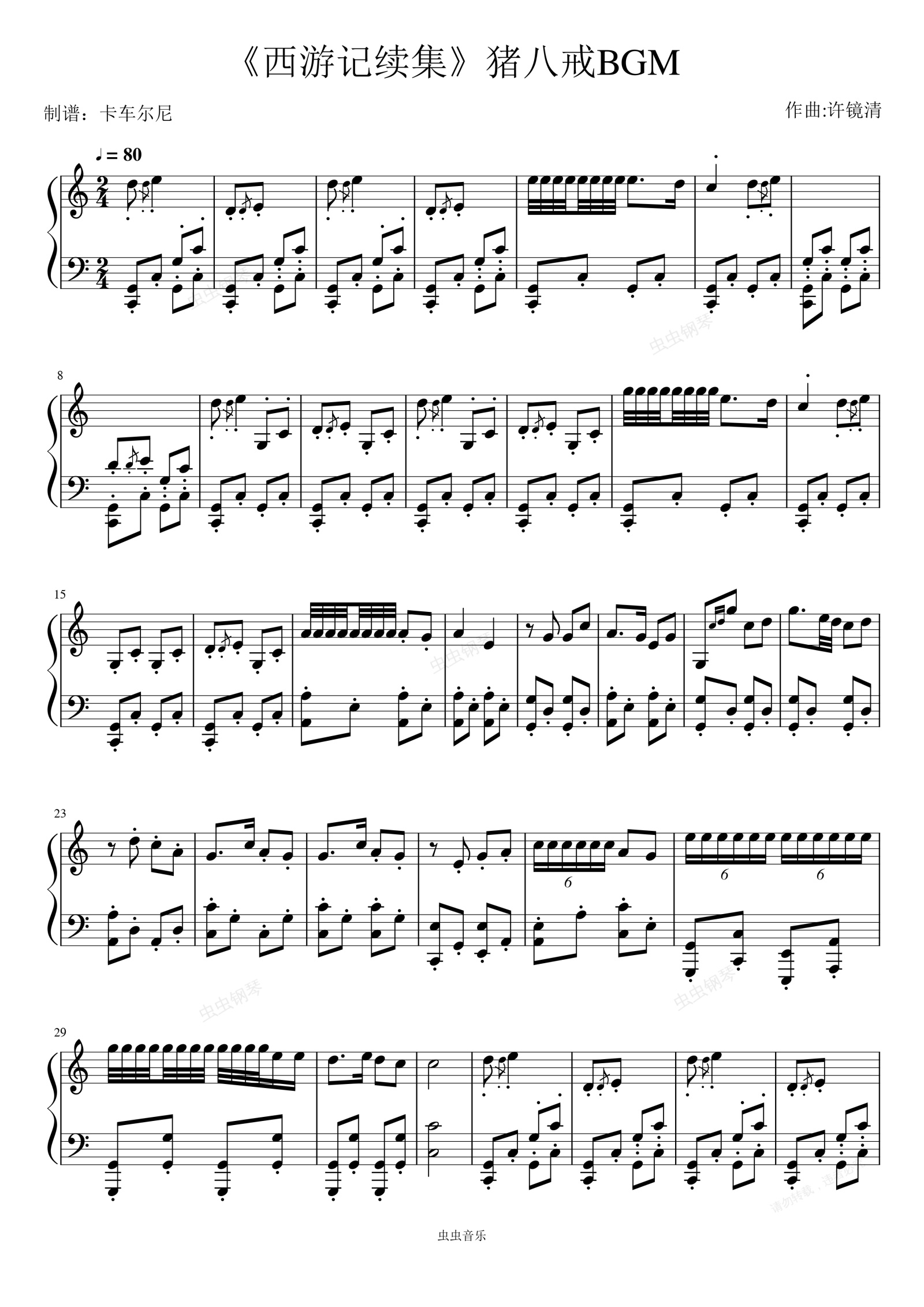 钢琴谱:《西游记续集》猪八戒专属BGM