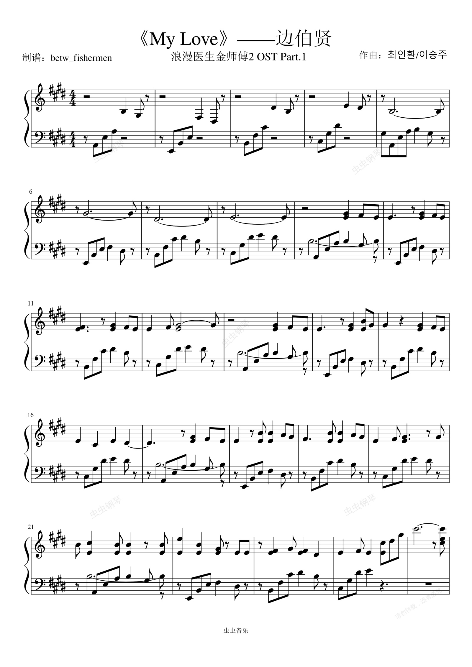 钢琴谱:浪漫医生金师傅ost.part1《My Love》——边伯贤
