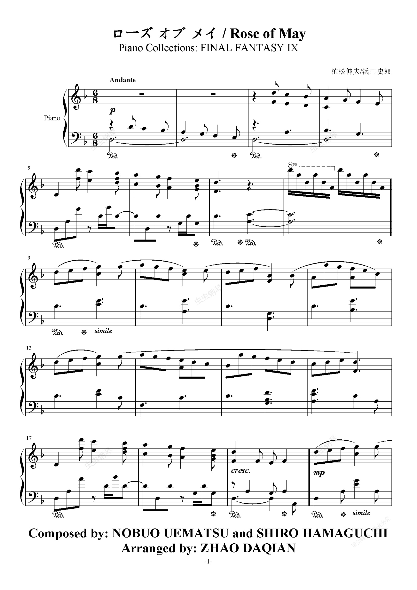 钢琴谱:【最终幻想9】ローズ オブ メイ