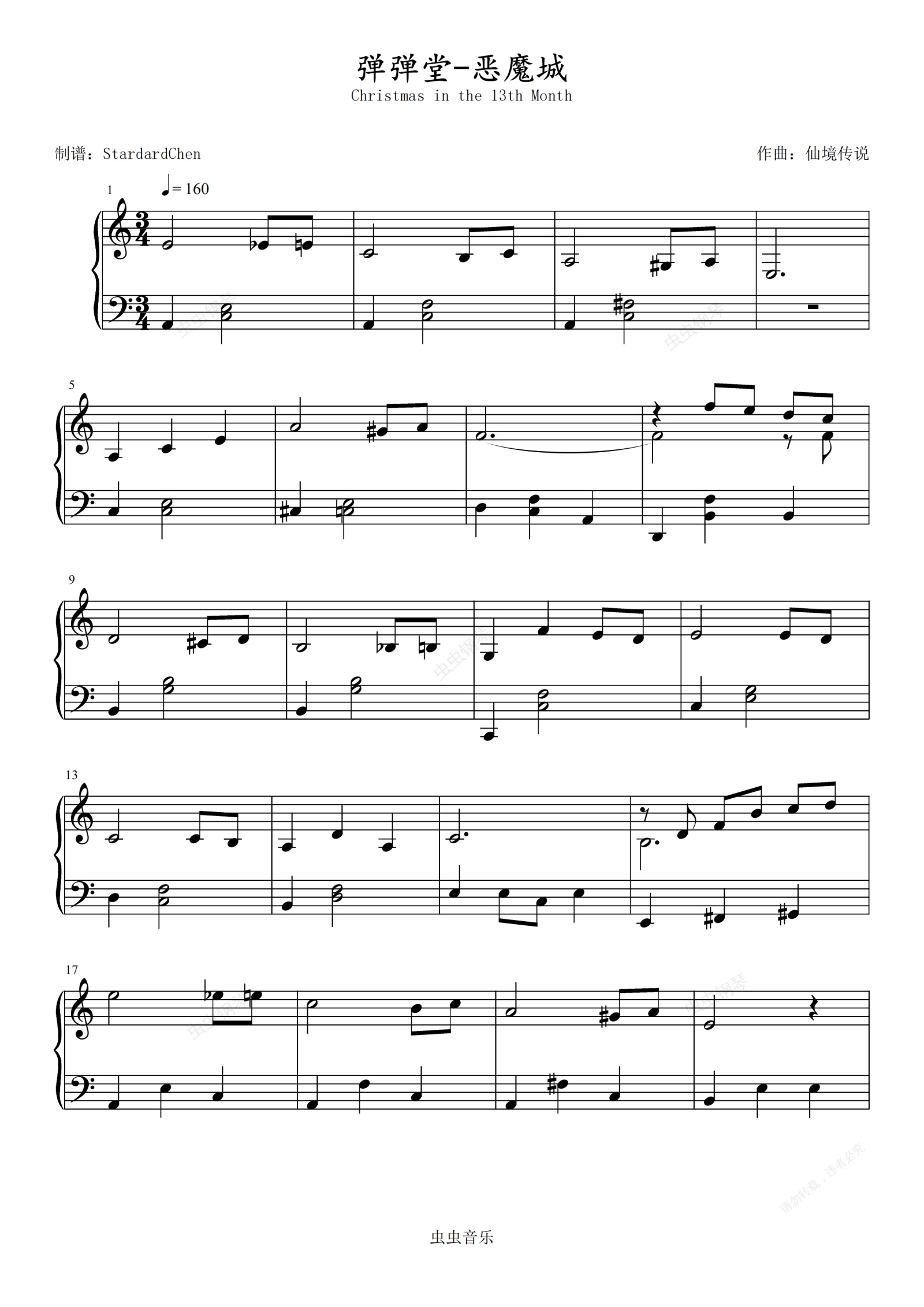 钢琴谱:弹弹堂-恶魔城 Christmas in the 13th Month 仙境传说