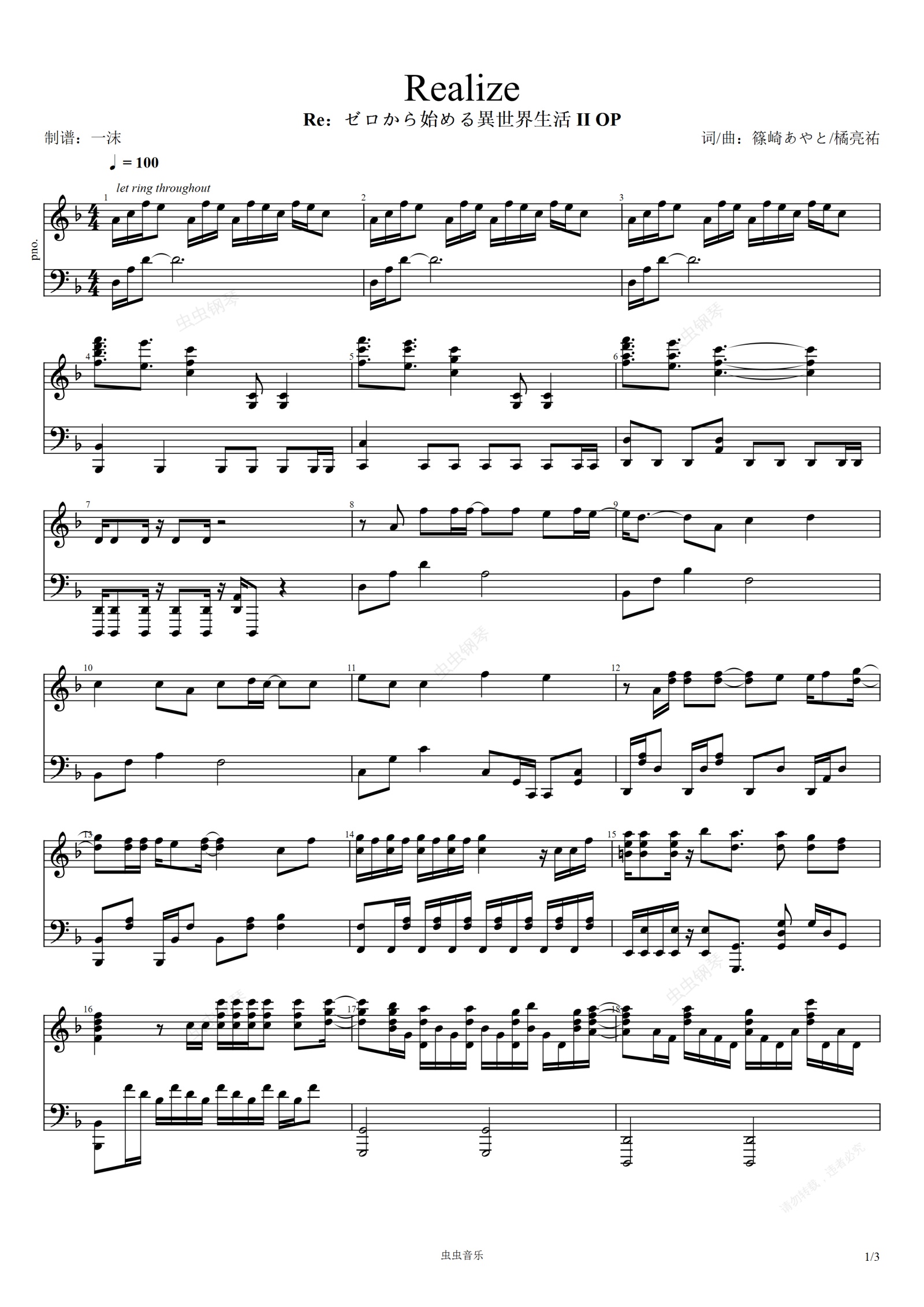 钢琴谱:Re:从零开始的异世界生活第二季OP 钢琴改编