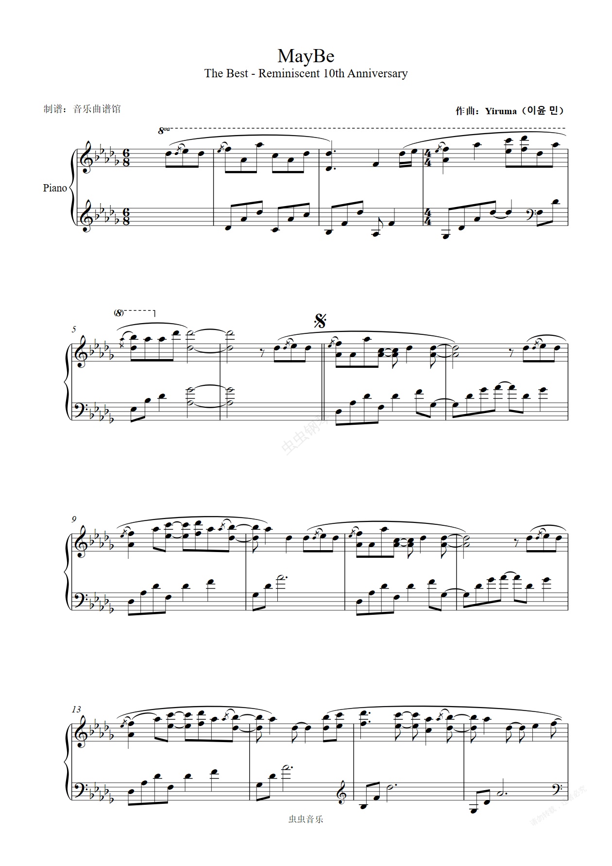 钢琴谱:May Be【十周年版】Yiruma 李闰珉 10周年版 10周年专辑精选 The Best - Reminiscent 10th Anniversary