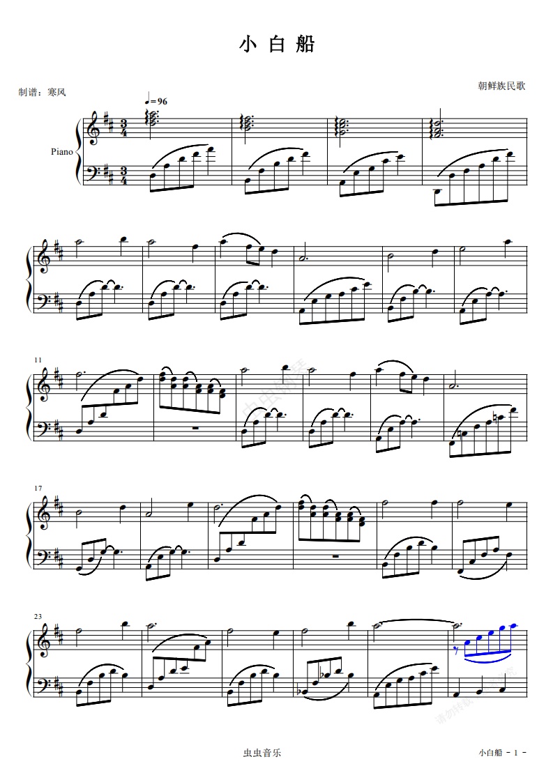 钢琴谱:小白船