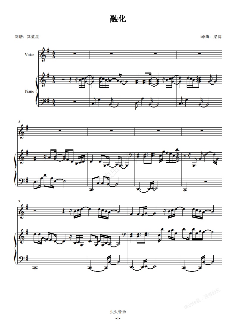钢琴谱:梁博-融化-伴奏谱