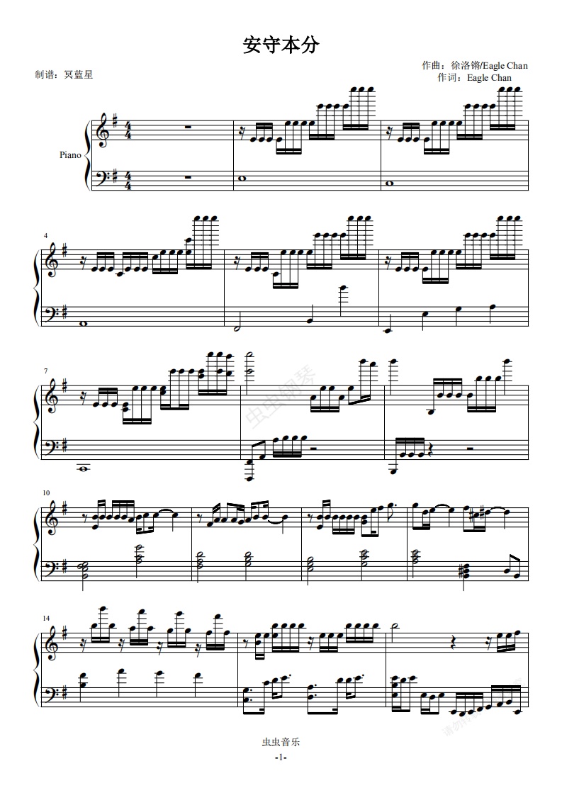 钢琴谱:安守本分-谷娅溦-演奏谱