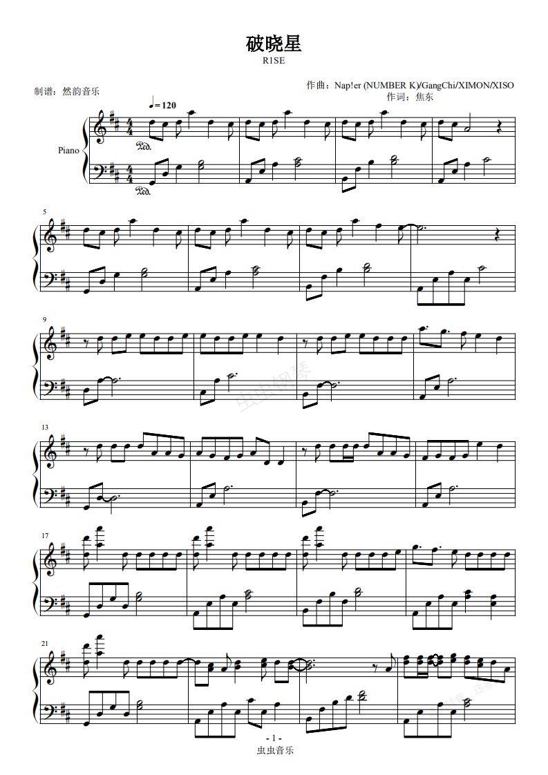 钢琴谱:【然韵音乐】R1SE-破晓星 超浪漫还原