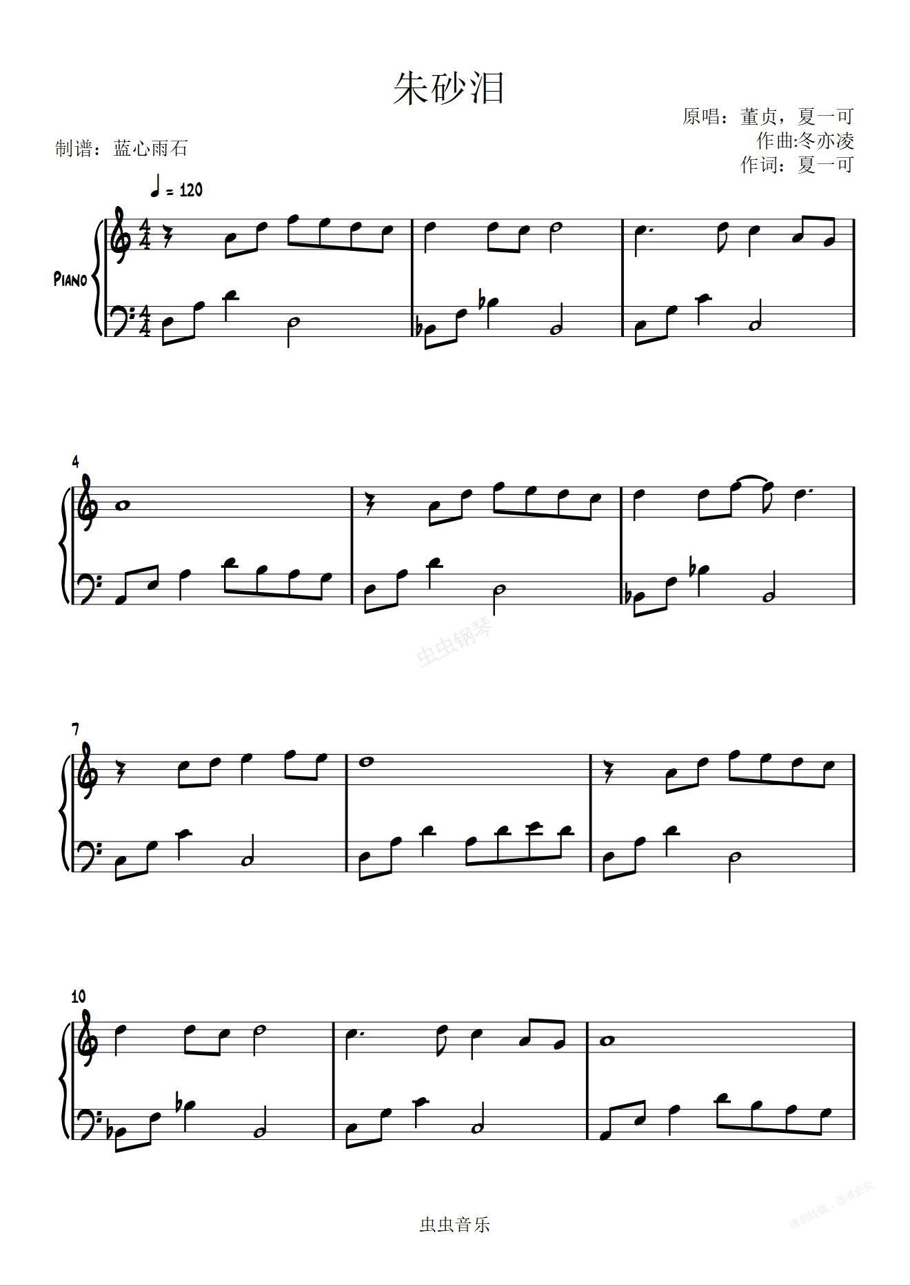 钢琴谱:朱砂泪