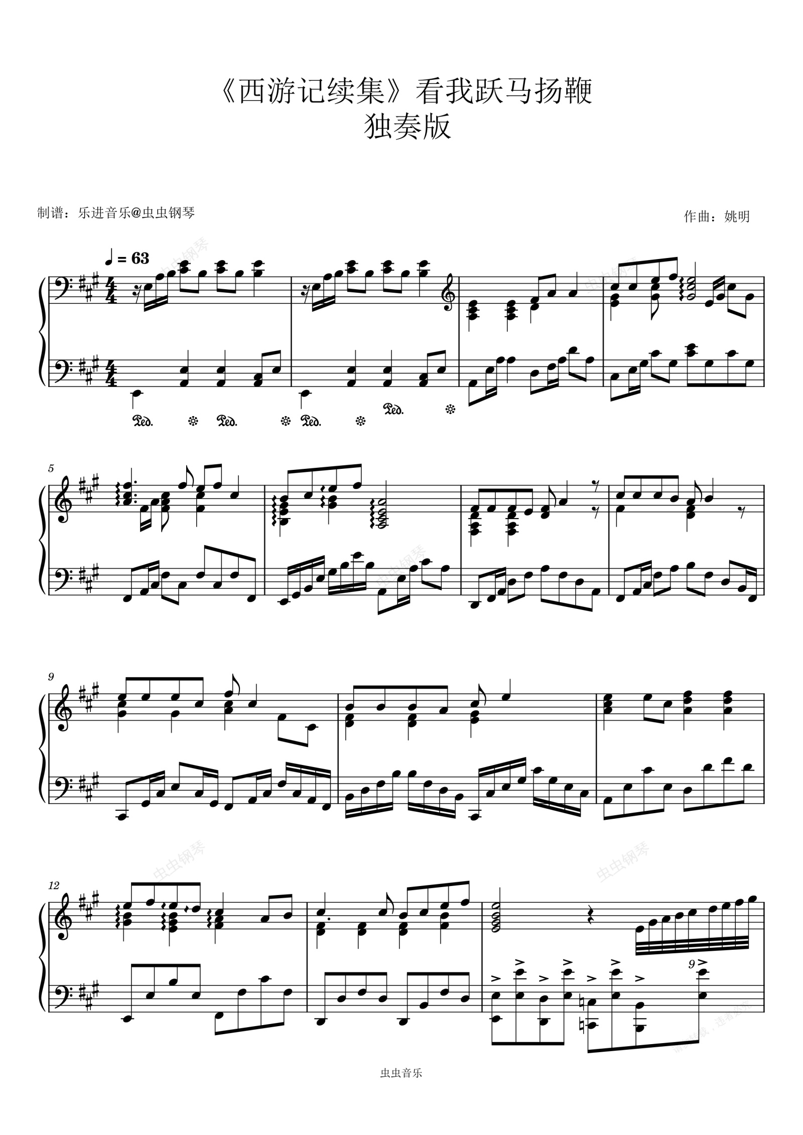 钢琴谱:《西游记续集》看我跃马扬鞭 唯美独奏版