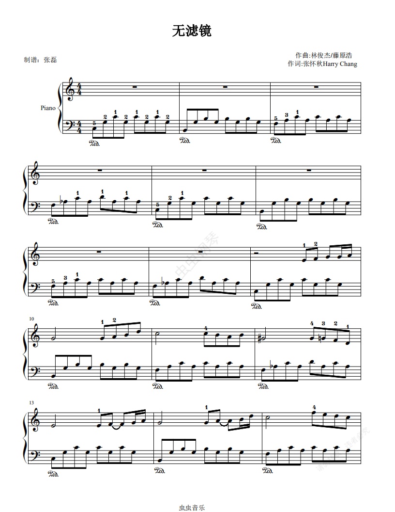 钢琴谱:无滤镜--林俊杰--极限还原带指法