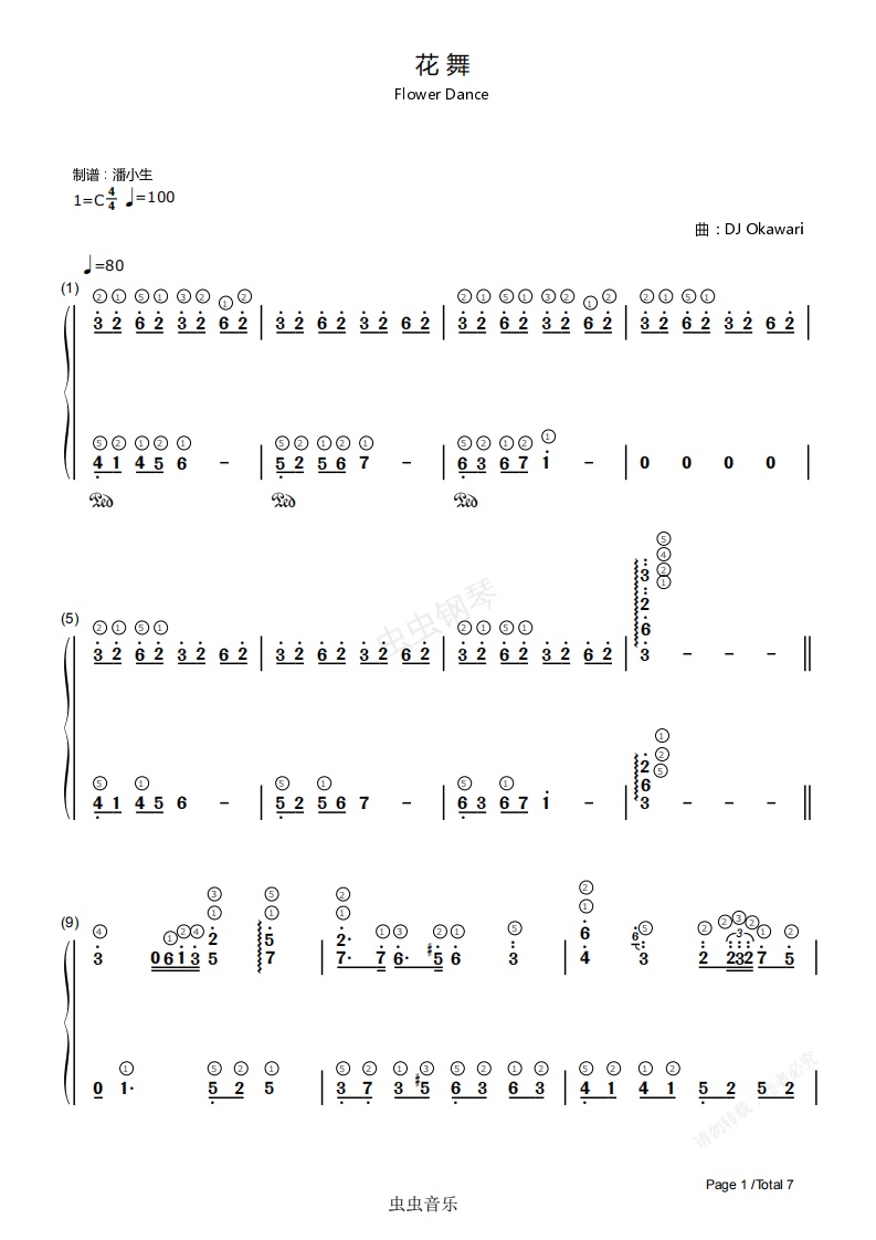 钢琴谱:[双手简谱] 花之舞 带指法 Flower Dance 简单版 C调 花舞