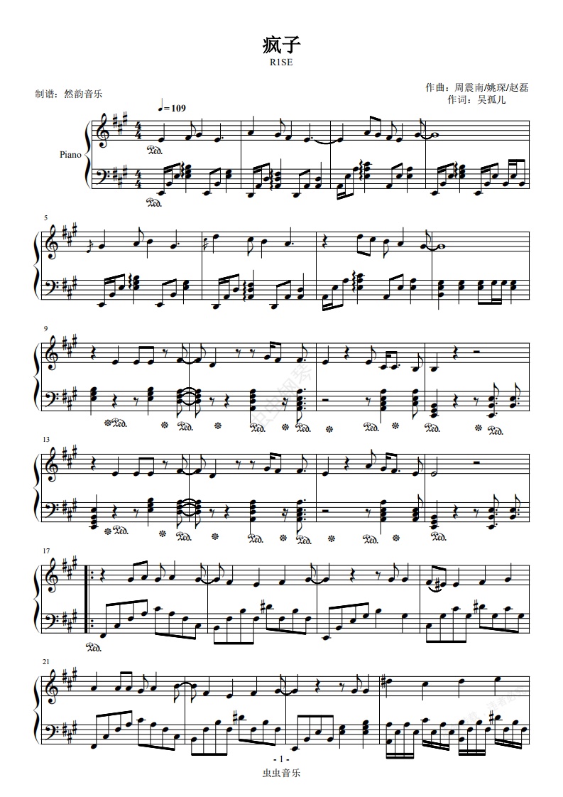 钢琴谱:【然韵音乐】R1SE-疯子 爆燃改编