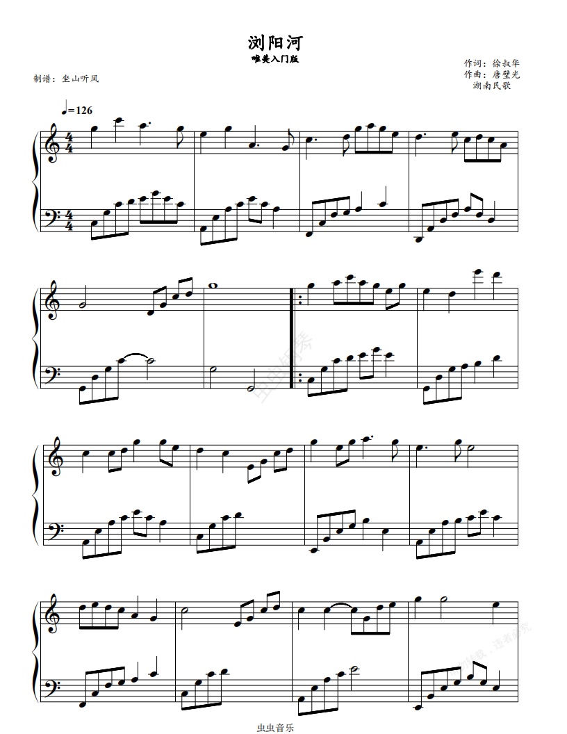 钢琴谱:浏阳河——唯美入门版(大音符)