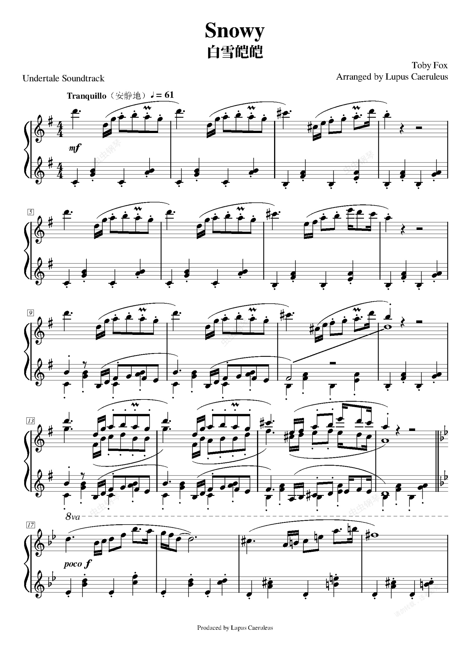 【原曲和遗迹一样有很大的混响,演奏的时候最好可以选择在大而空的房间里。另外由于的蜜汁特性,波音和倚音都播放得很慢,实际演奏的时候应该参照原曲弹得更快一些。另外由于版面问题,这次我也偷懒不标注和弦记号了。】