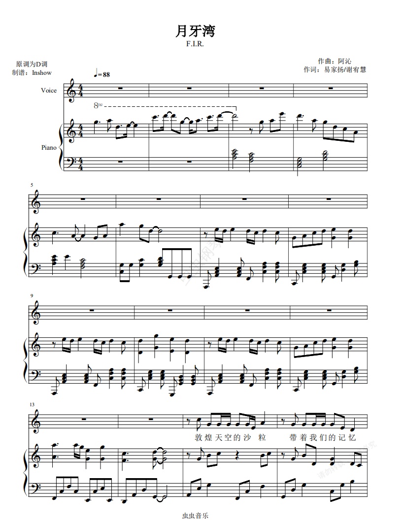 钢琴谱:F.I.R. - 月牙湾【C调弹唱谱】