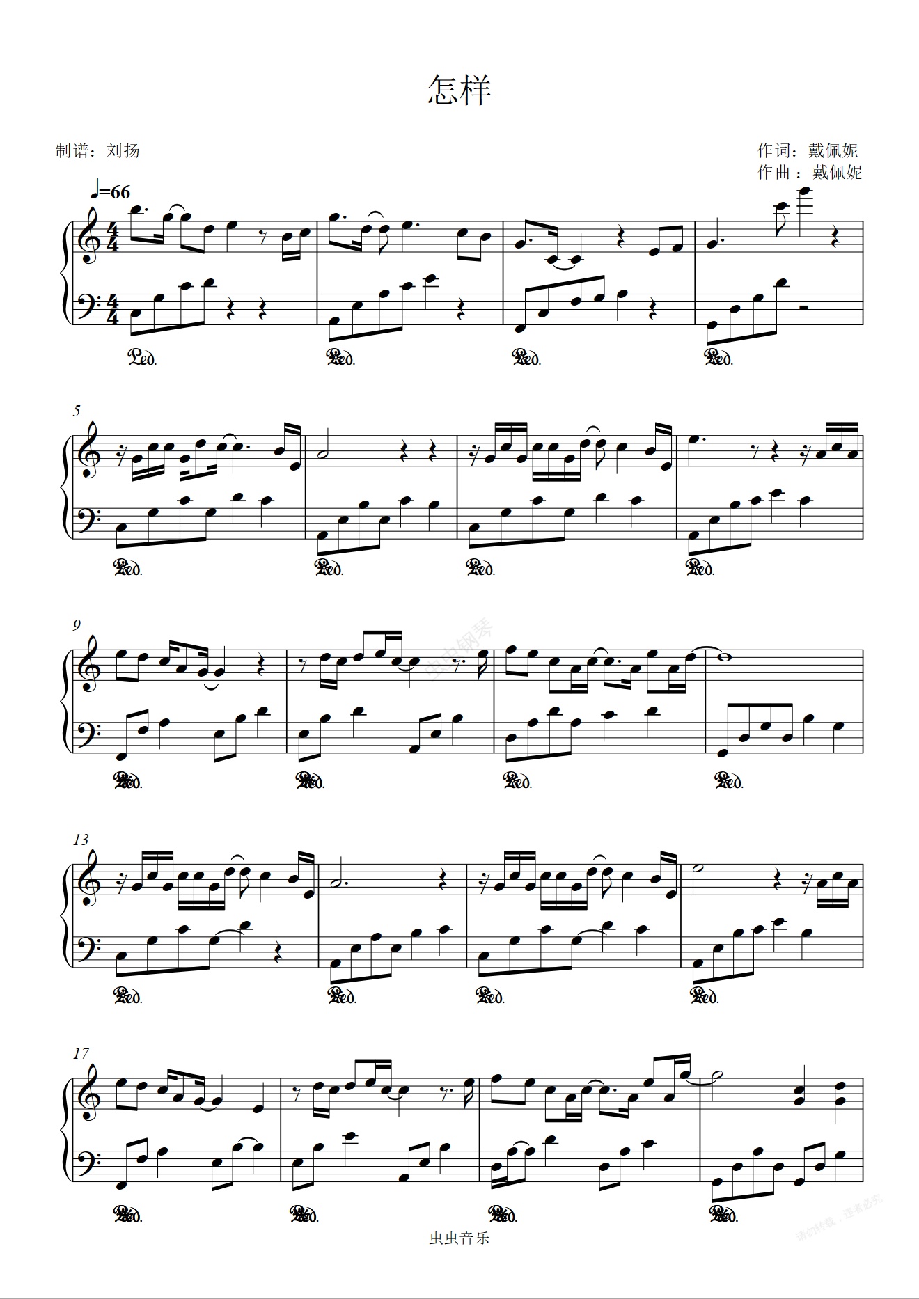 钢琴谱:怎样 戴佩妮 刘扬改编