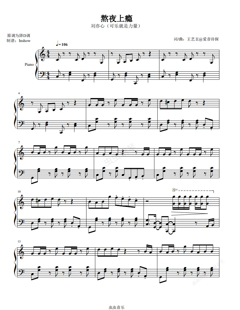 钢琴谱:熬夜上瘾【C调独奏谱】