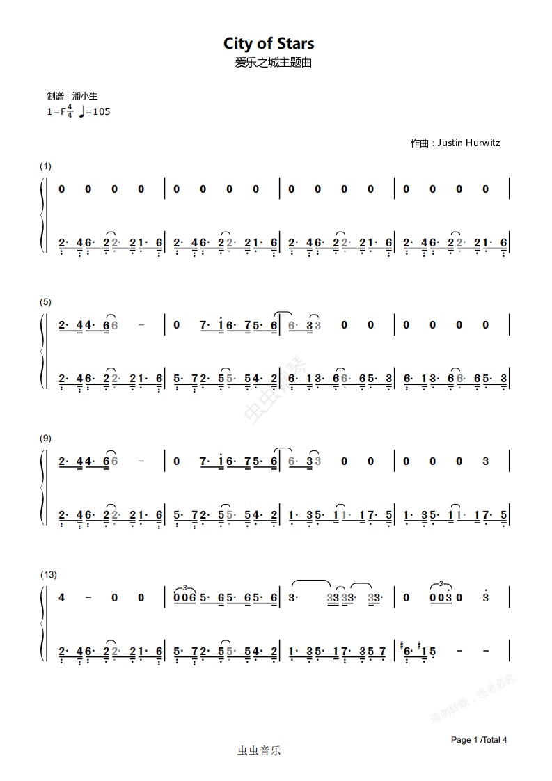 钢琴谱:[双手简谱]City of Stars 爱乐之城 主题曲 轻快版