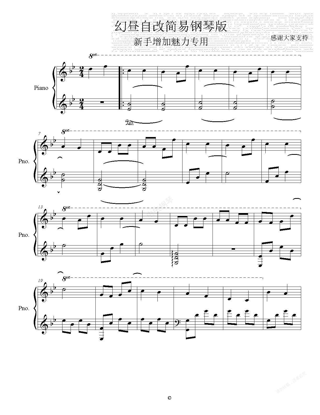 钢琴谱:Illusionary Daytime幻昼(容易上手版)