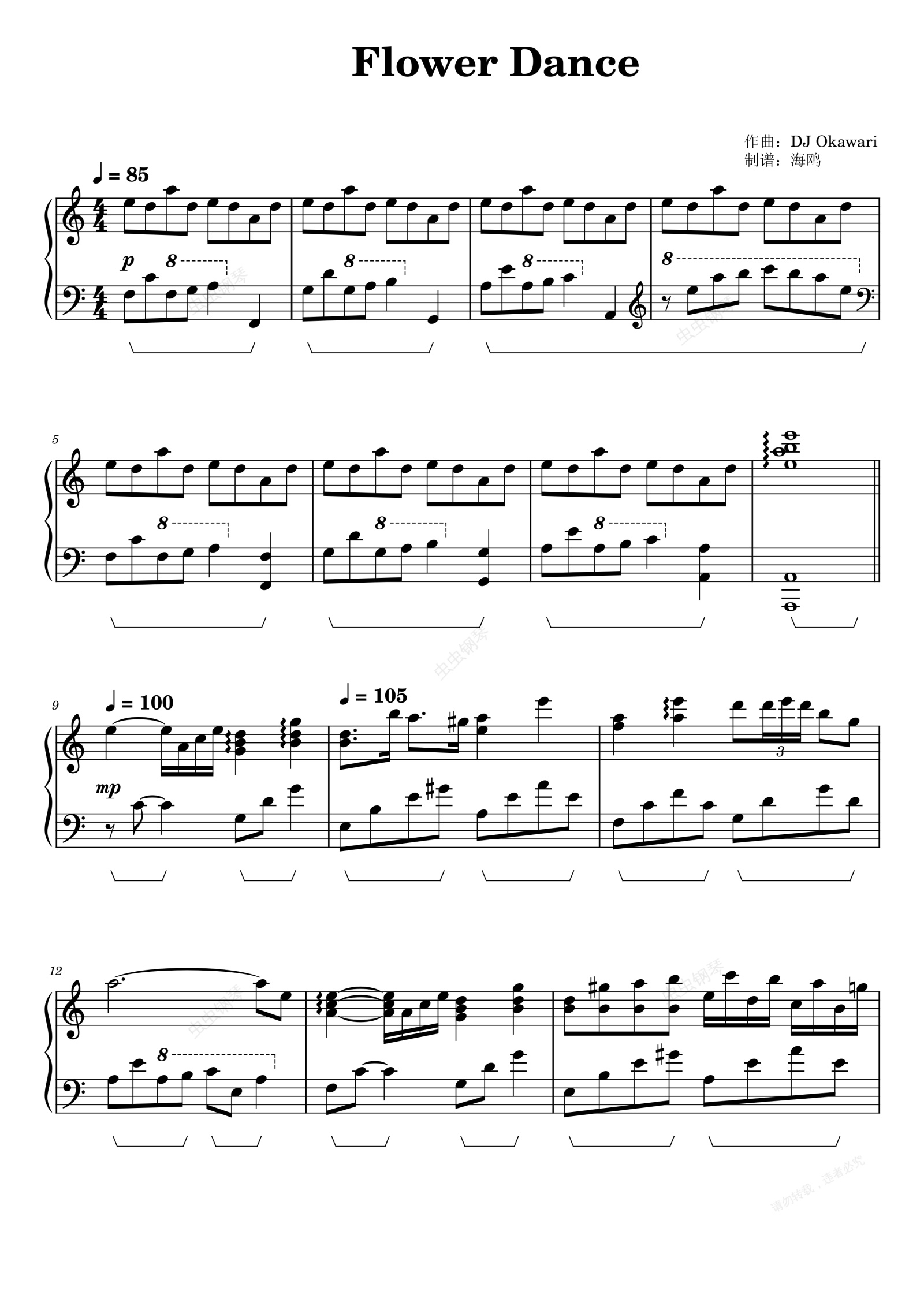 钢琴谱:Flower Dance【C调】-Dj Okawari 花之舞
