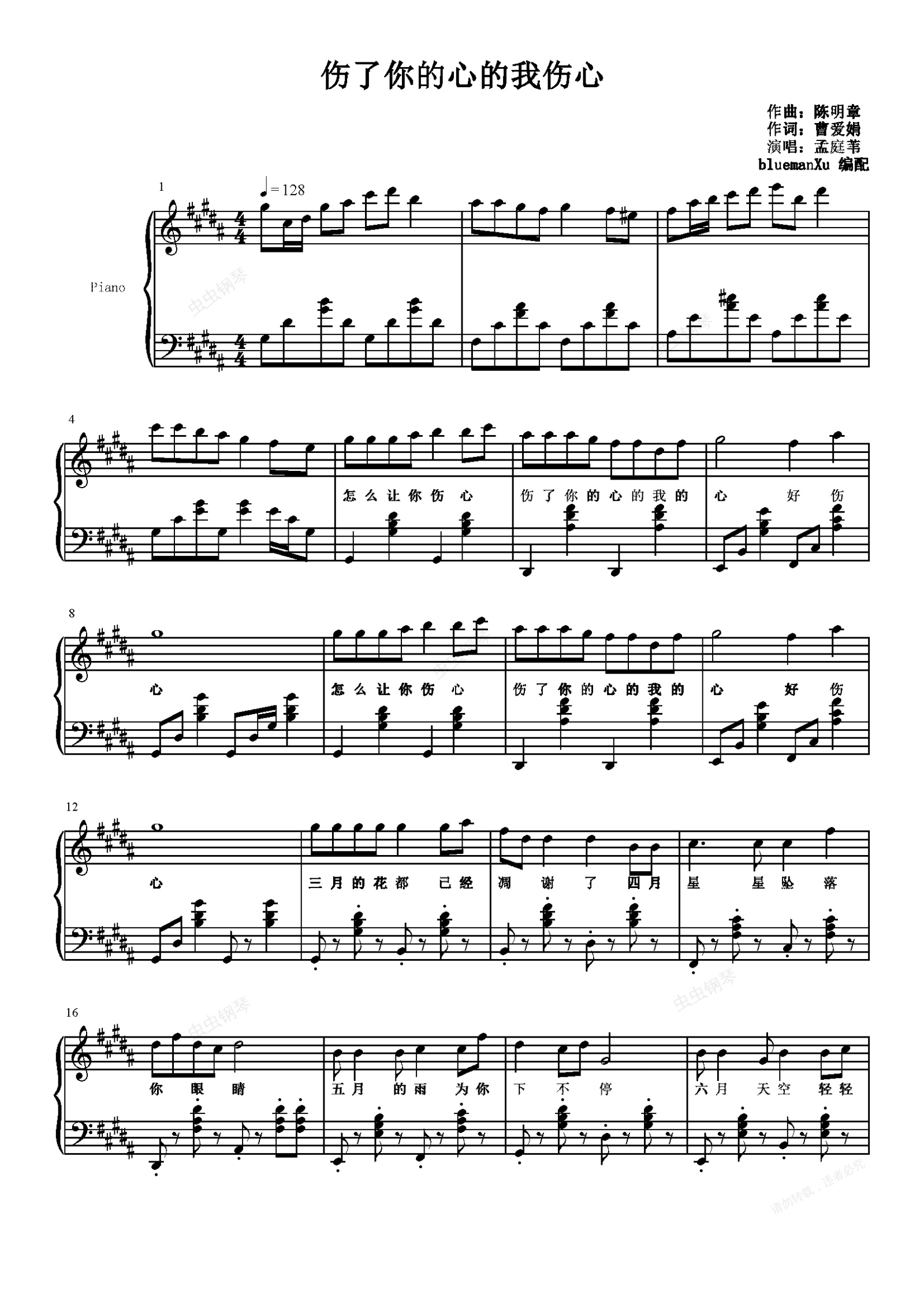 钢琴谱:伤了你的心的我伤心