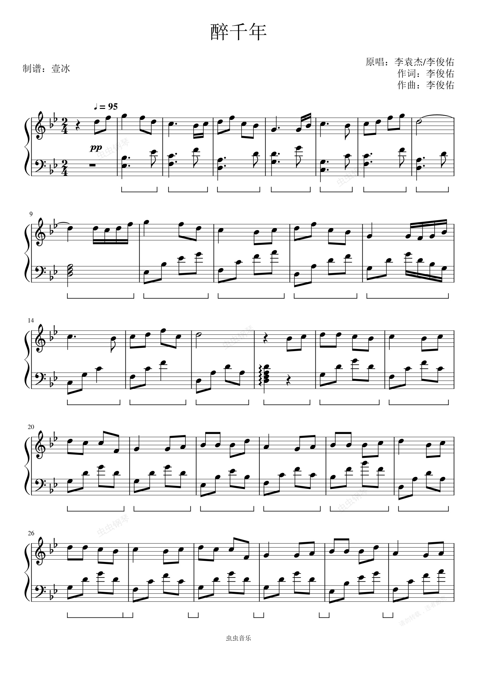钢琴谱:醉千年//车马慢,一生爱一人-壹冰钢琴版