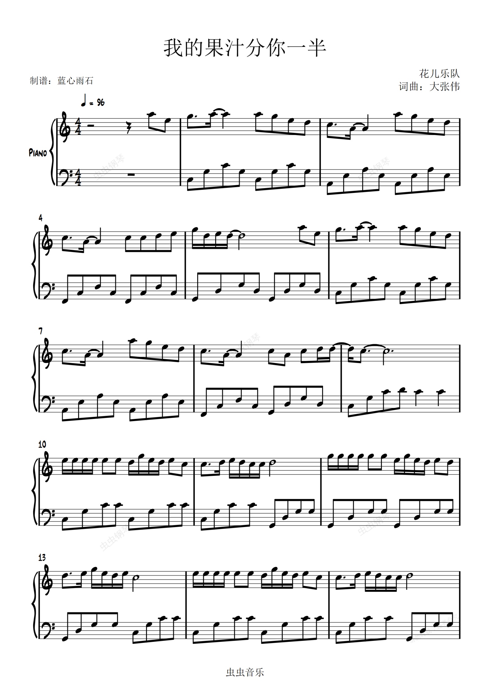 钢琴谱:我的果汁分你一半