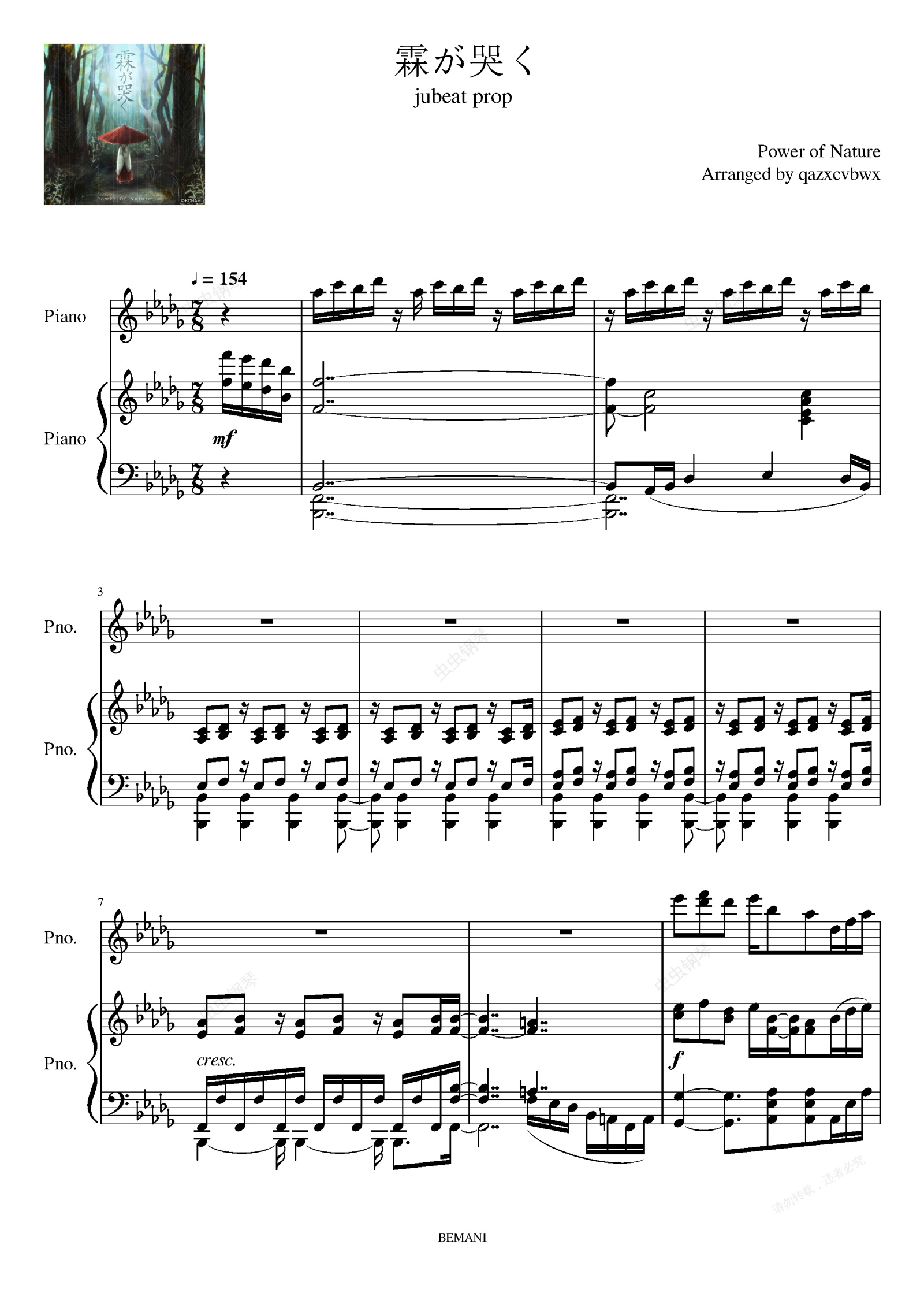 钢琴谱:霖が哭く - Power of Nature(Piano Arrange)【jubeat prop】