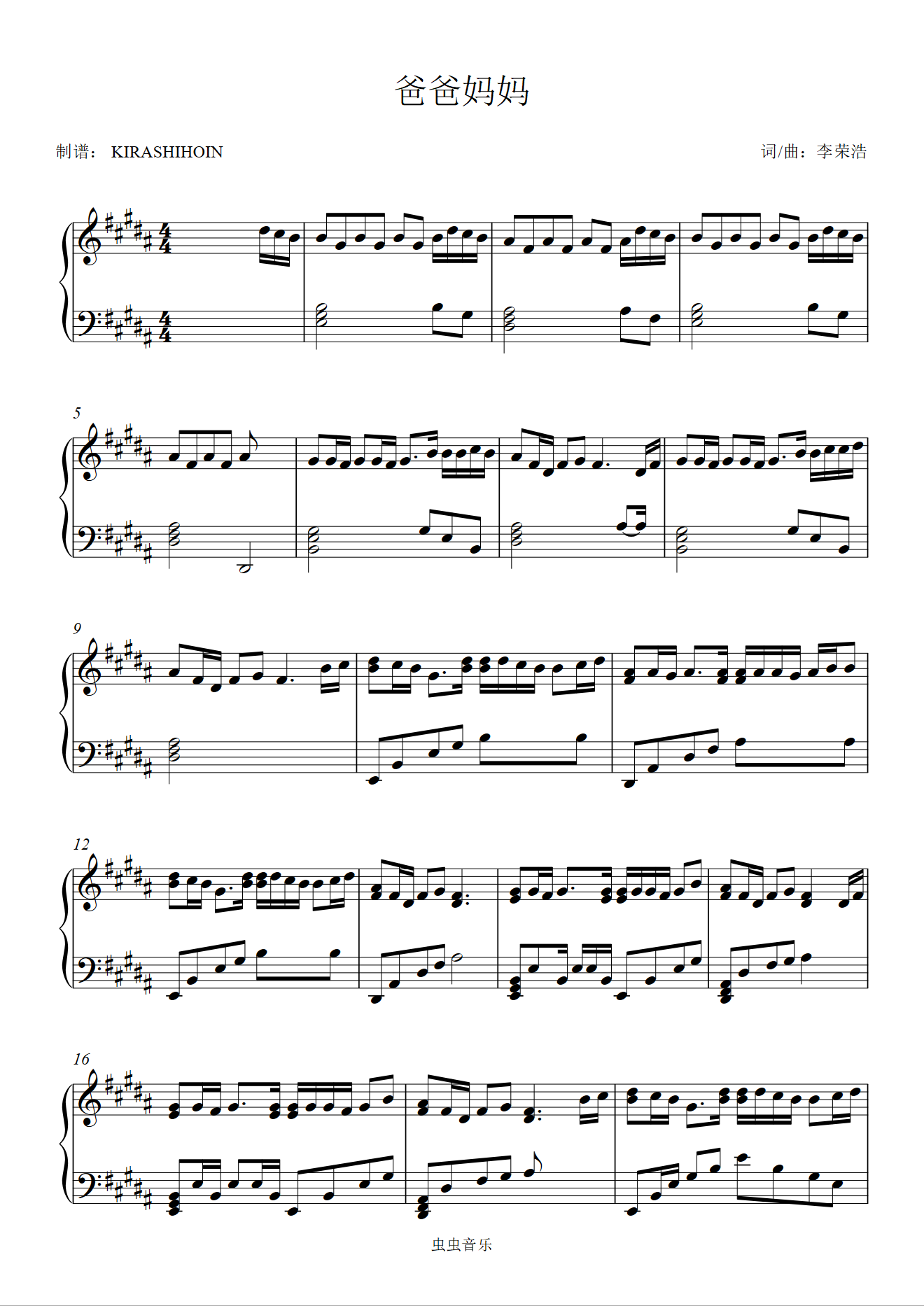钢琴谱:爸爸妈妈