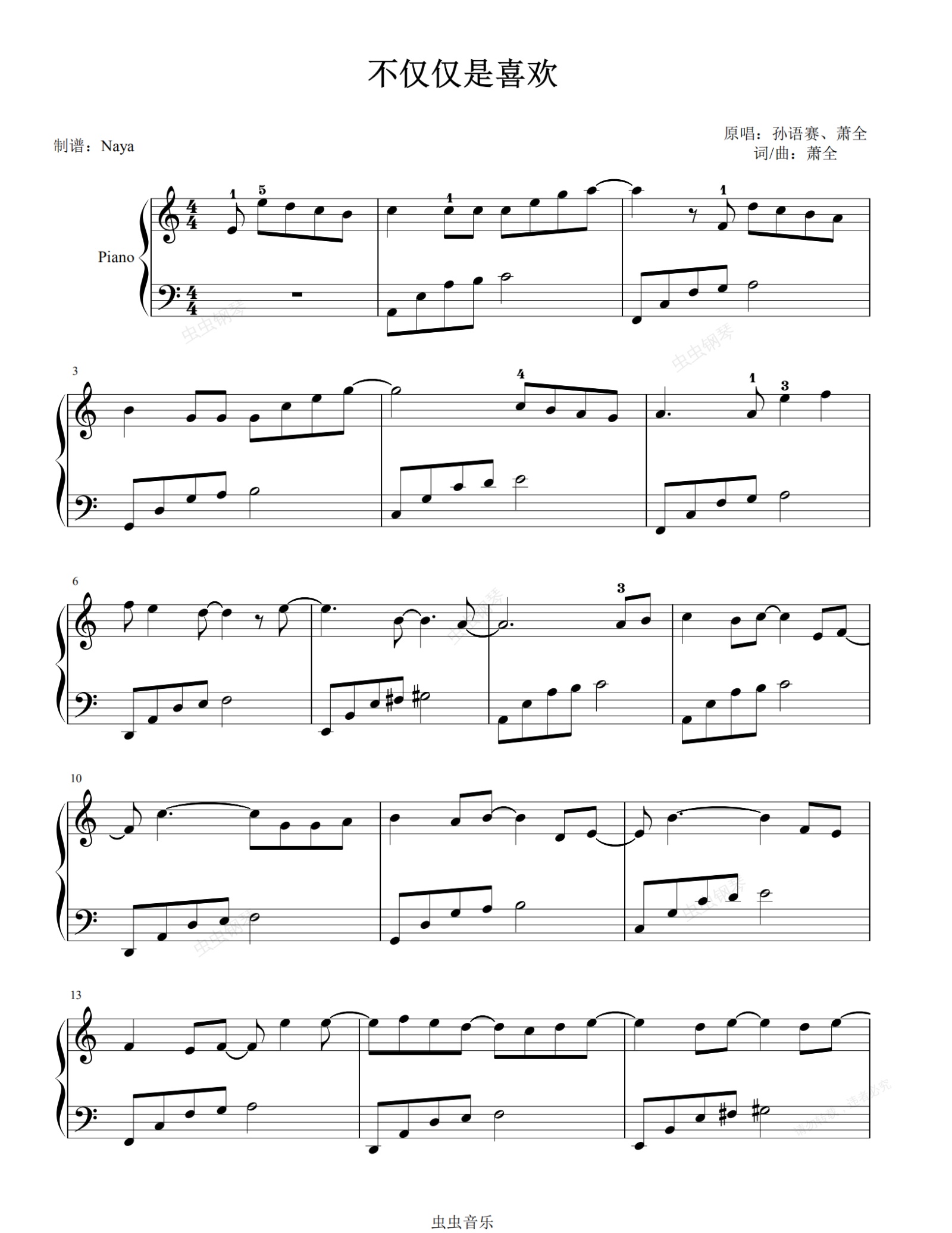 钢琴谱:不仅仅是喜欢-C调-简单好听