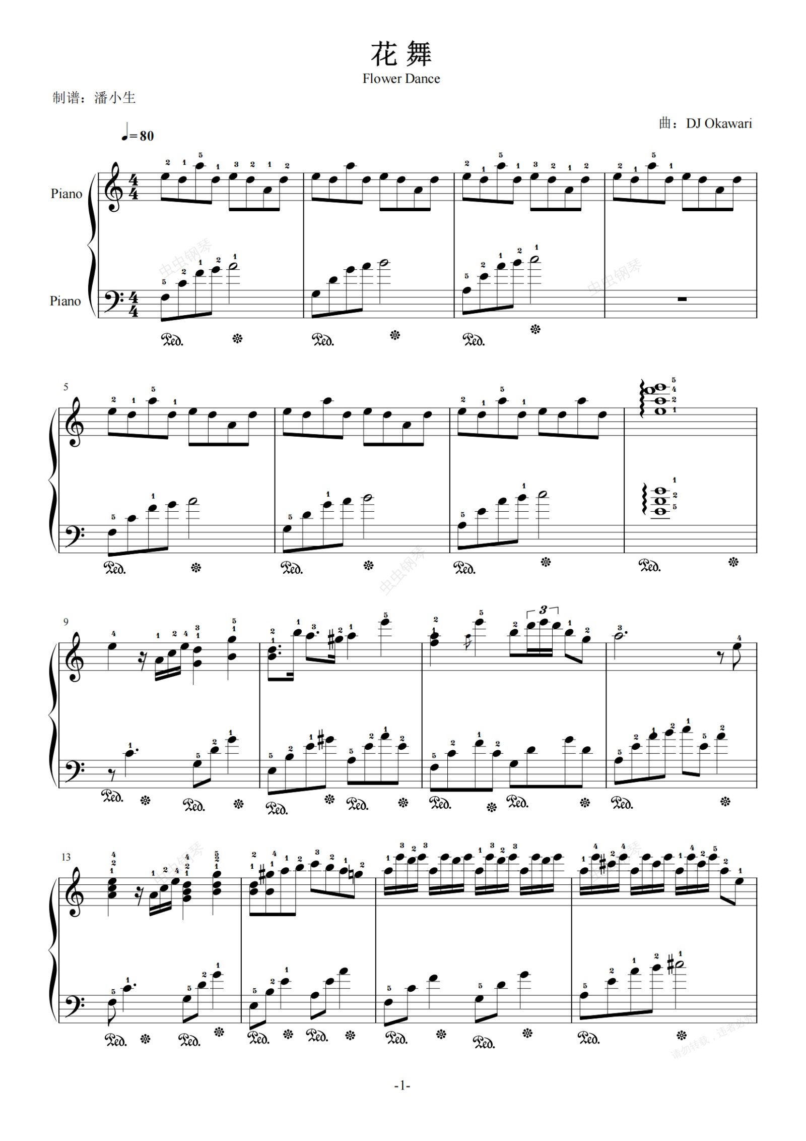 钢琴谱:花之舞 C调 完整指法 Flower Dance 简化版 花舞