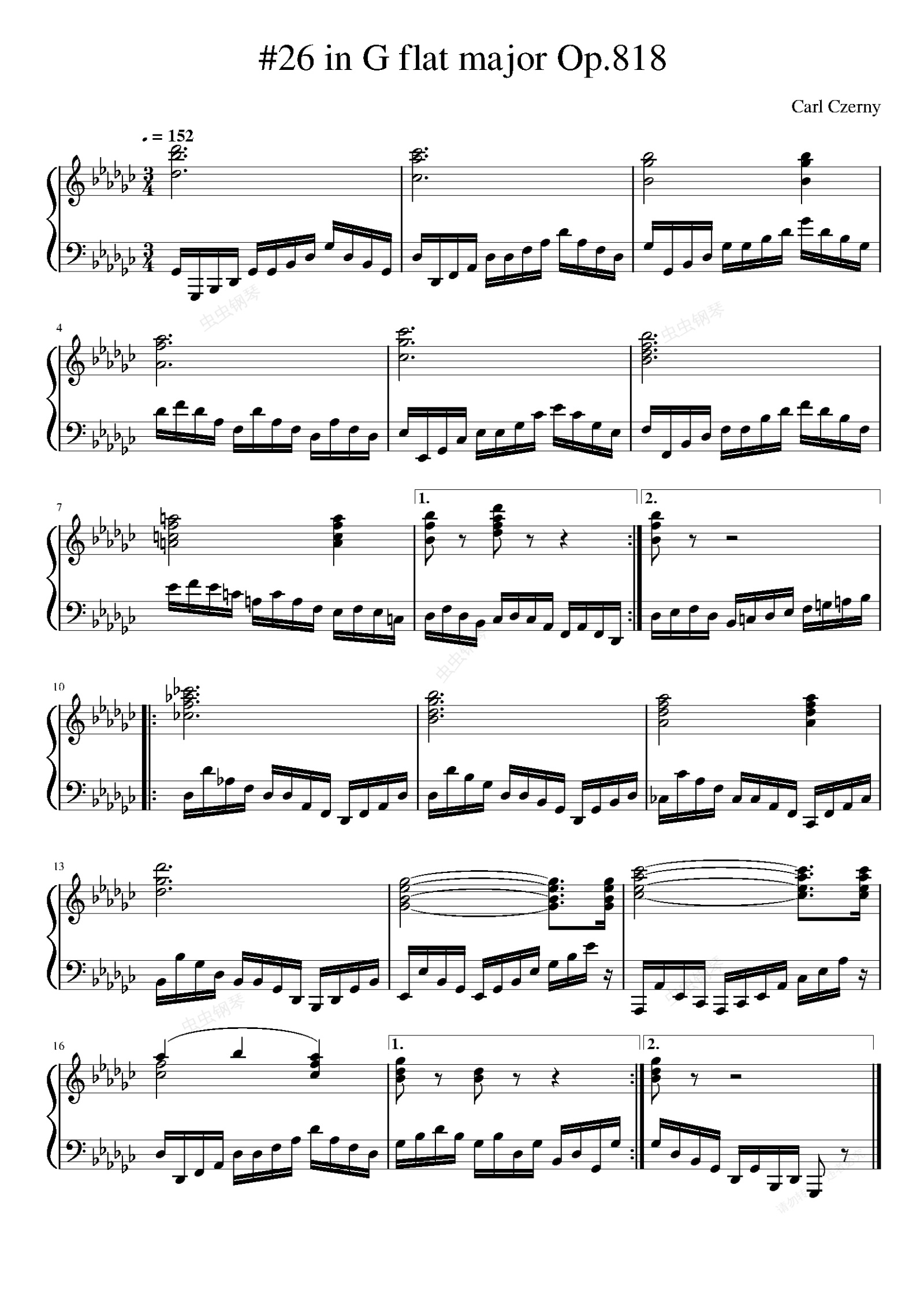 钢琴谱:车尔尼降G大调练习曲 Op.818 No.26