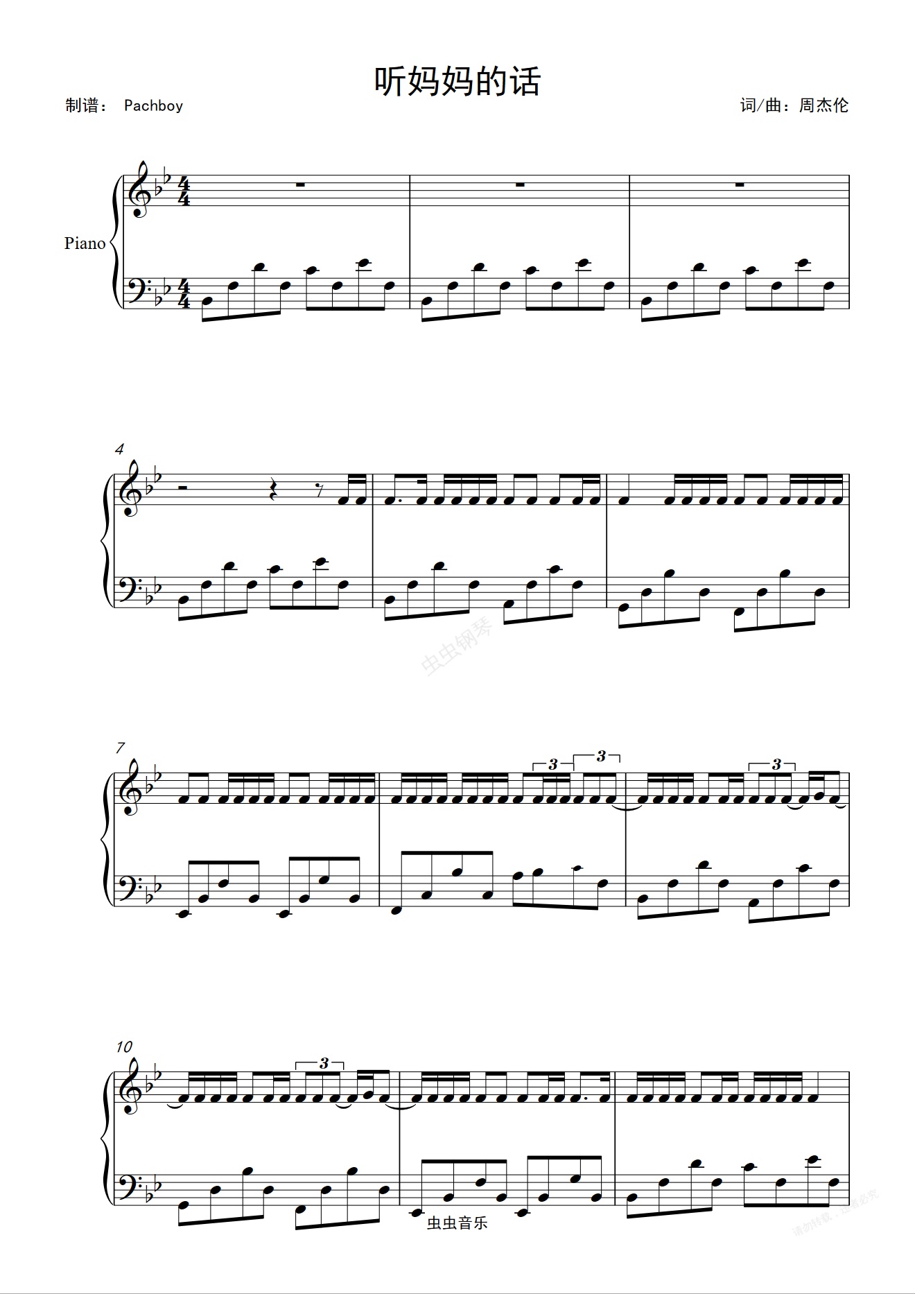 钢琴谱:听妈妈的话(钢琴独奏)JAY 周杰伦