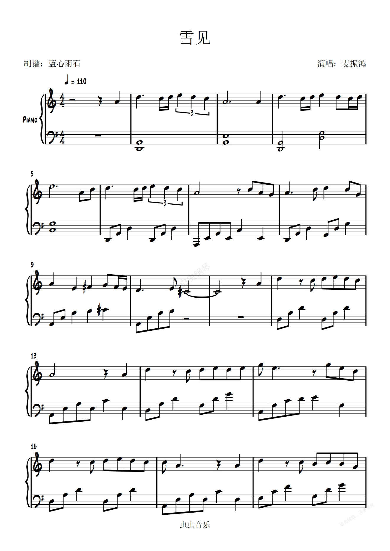 钢琴谱:雪见