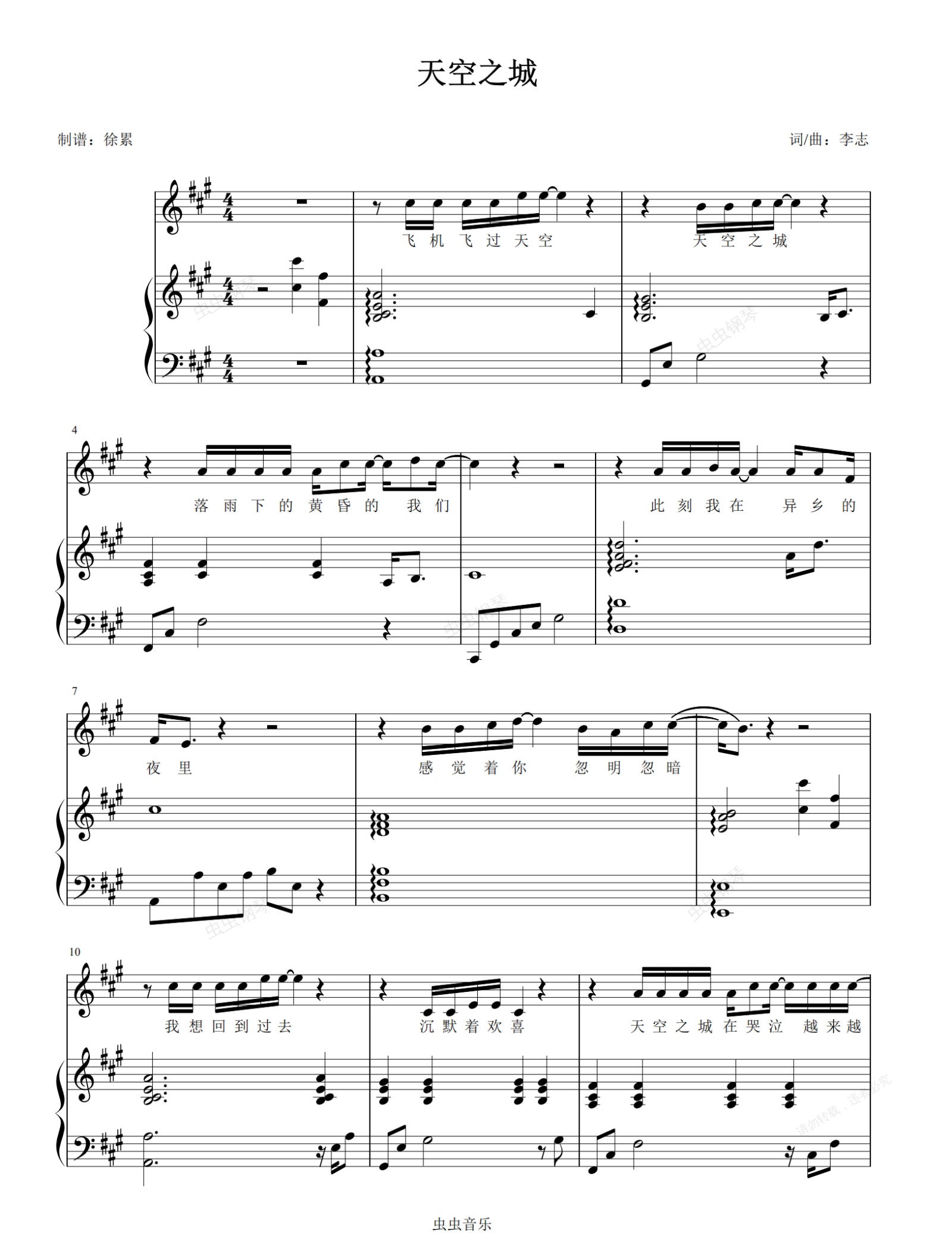 钢琴谱:李志《天空之城》原版改编钢琴弹唱谱