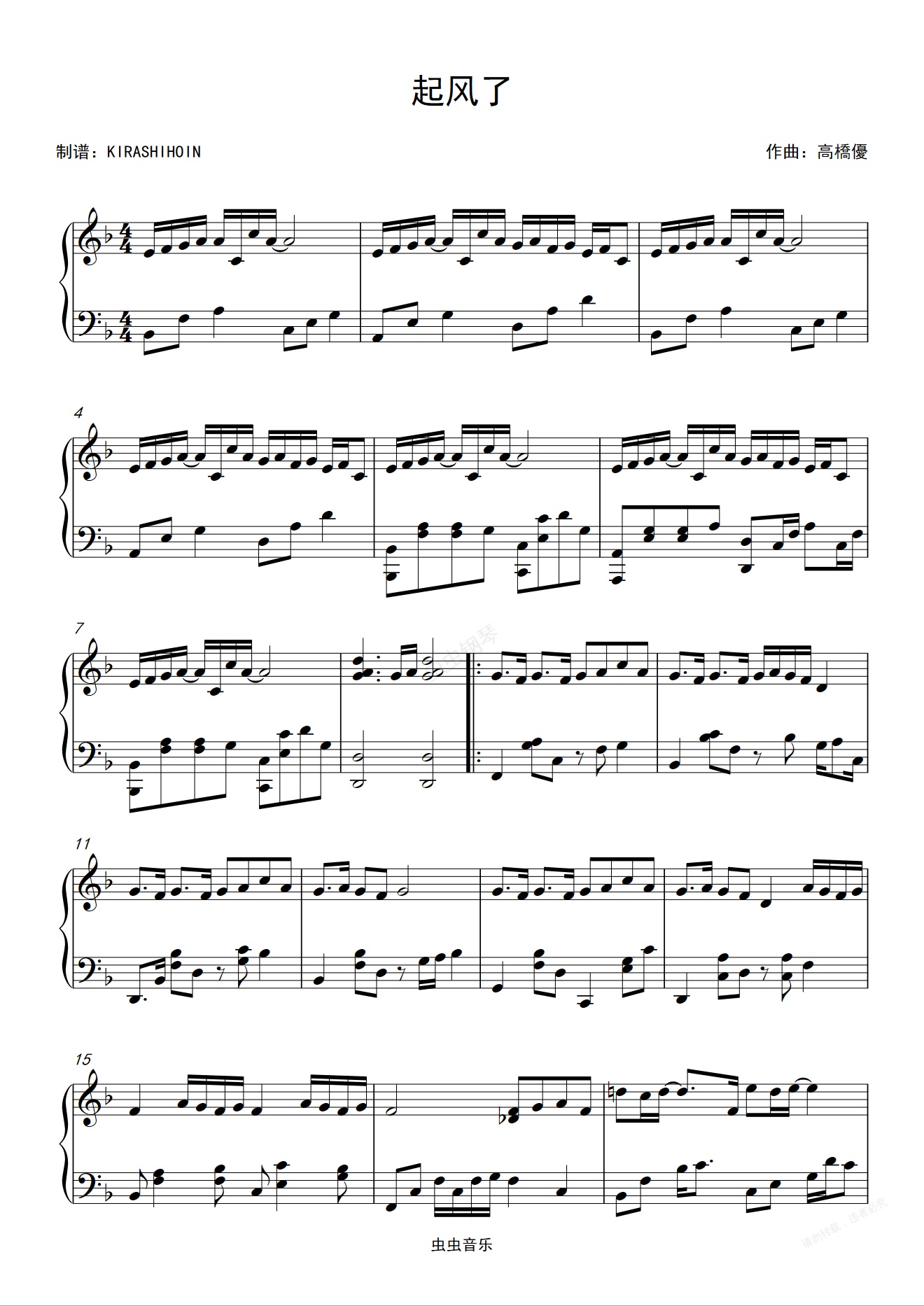 钢琴谱:起风了/ヤキモチ