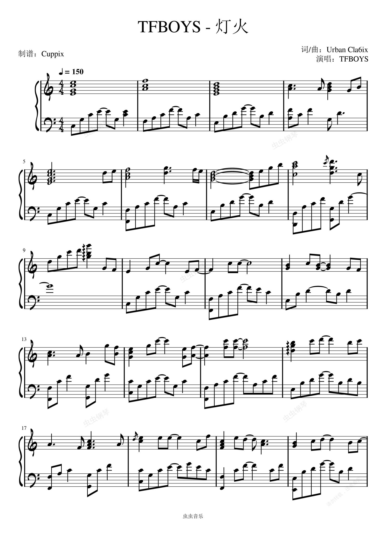 钢琴谱:TFBOYS - 灯火(高度还原版 - C调)