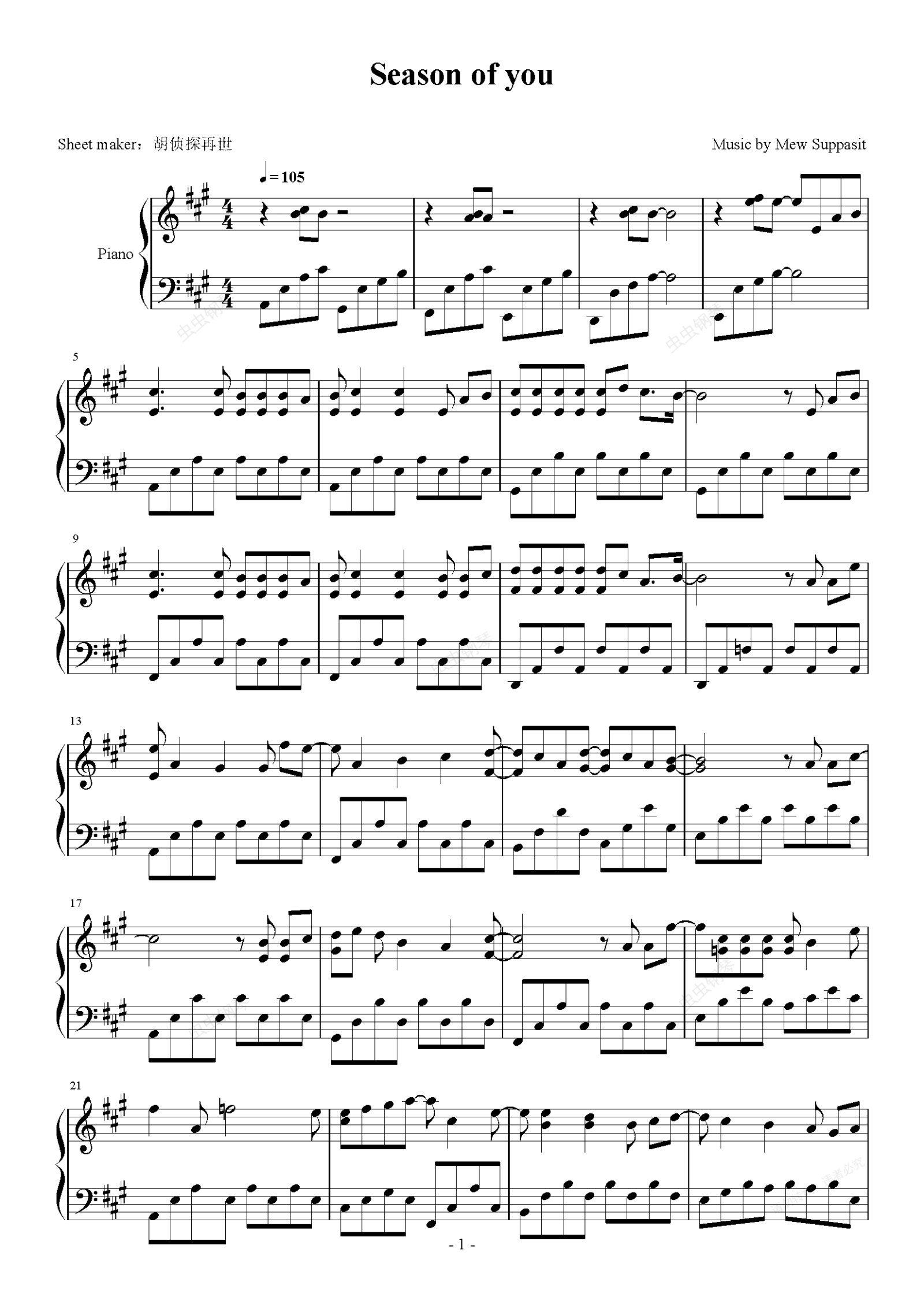 钢琴谱:【Mew Suppasit】Season of you