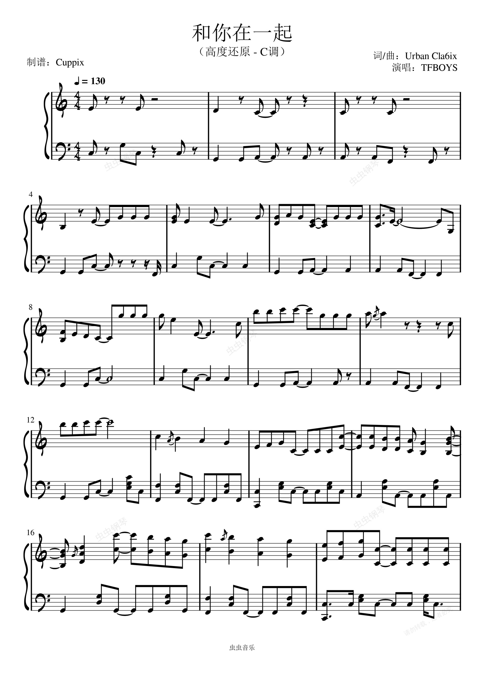 钢琴谱:TFBOYS - 和你在一起(高燃独奏版 - C调 - Cuppix改编)