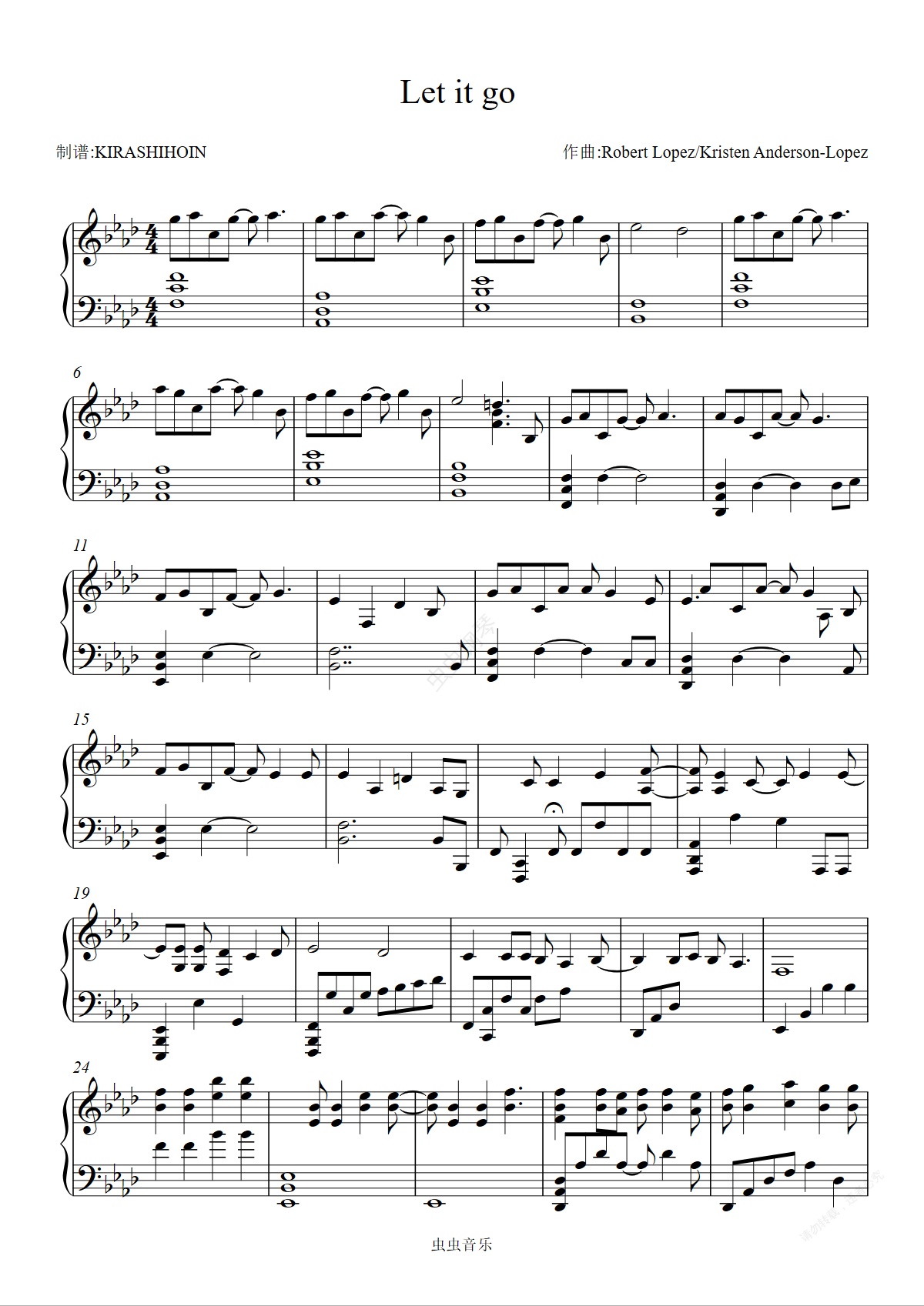 钢琴谱:Let it go (《冰雪奇缘》主题曲)