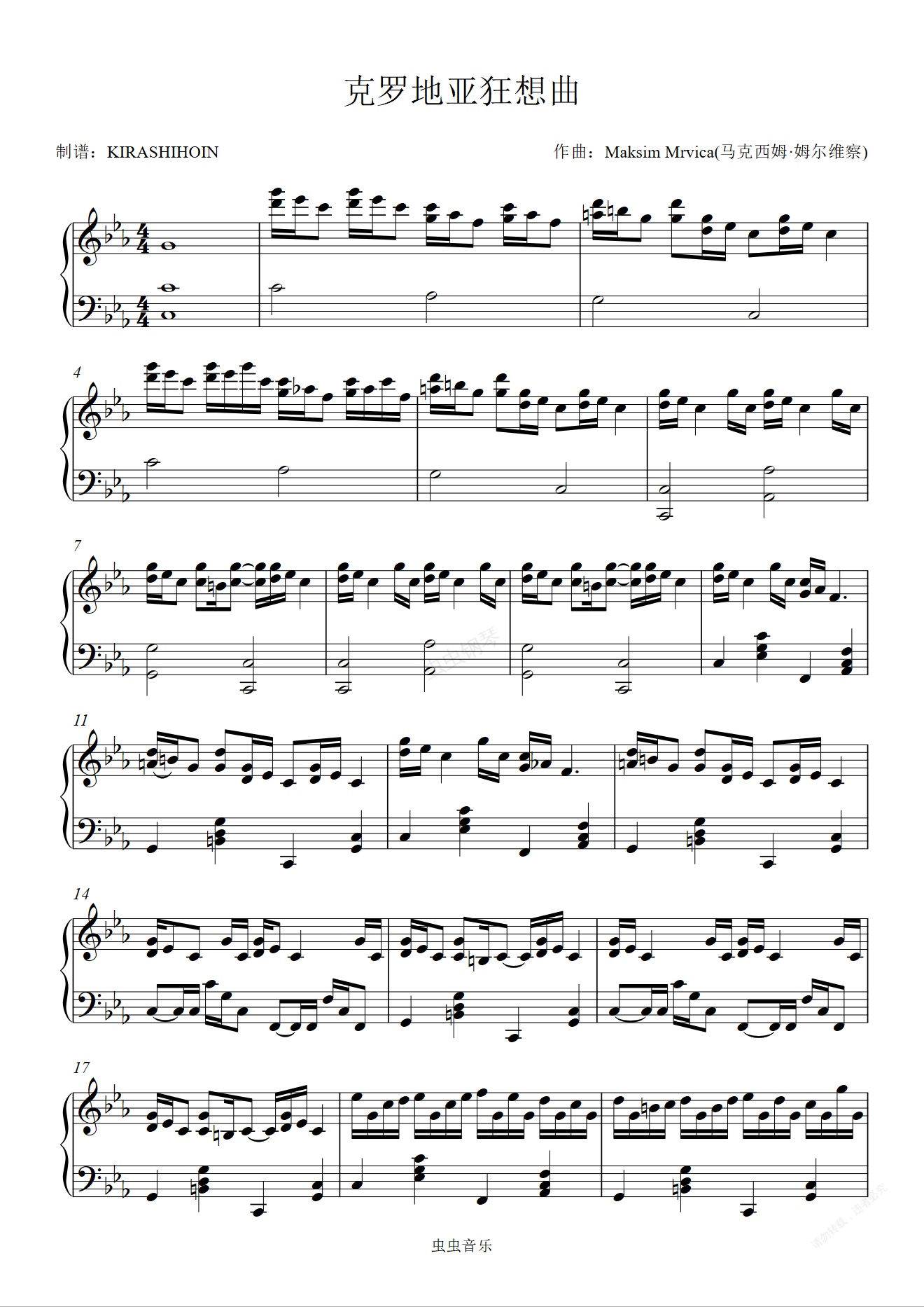 钢琴谱:克罗地亚狂想曲/Croatian Rhapsody