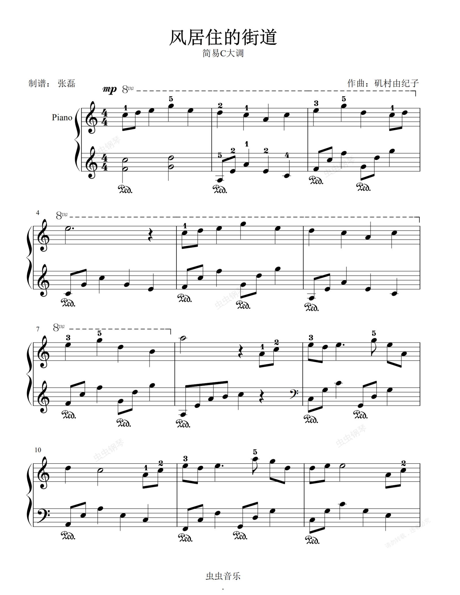 钢琴谱:风居住的街道--矶村由纪子--简易版