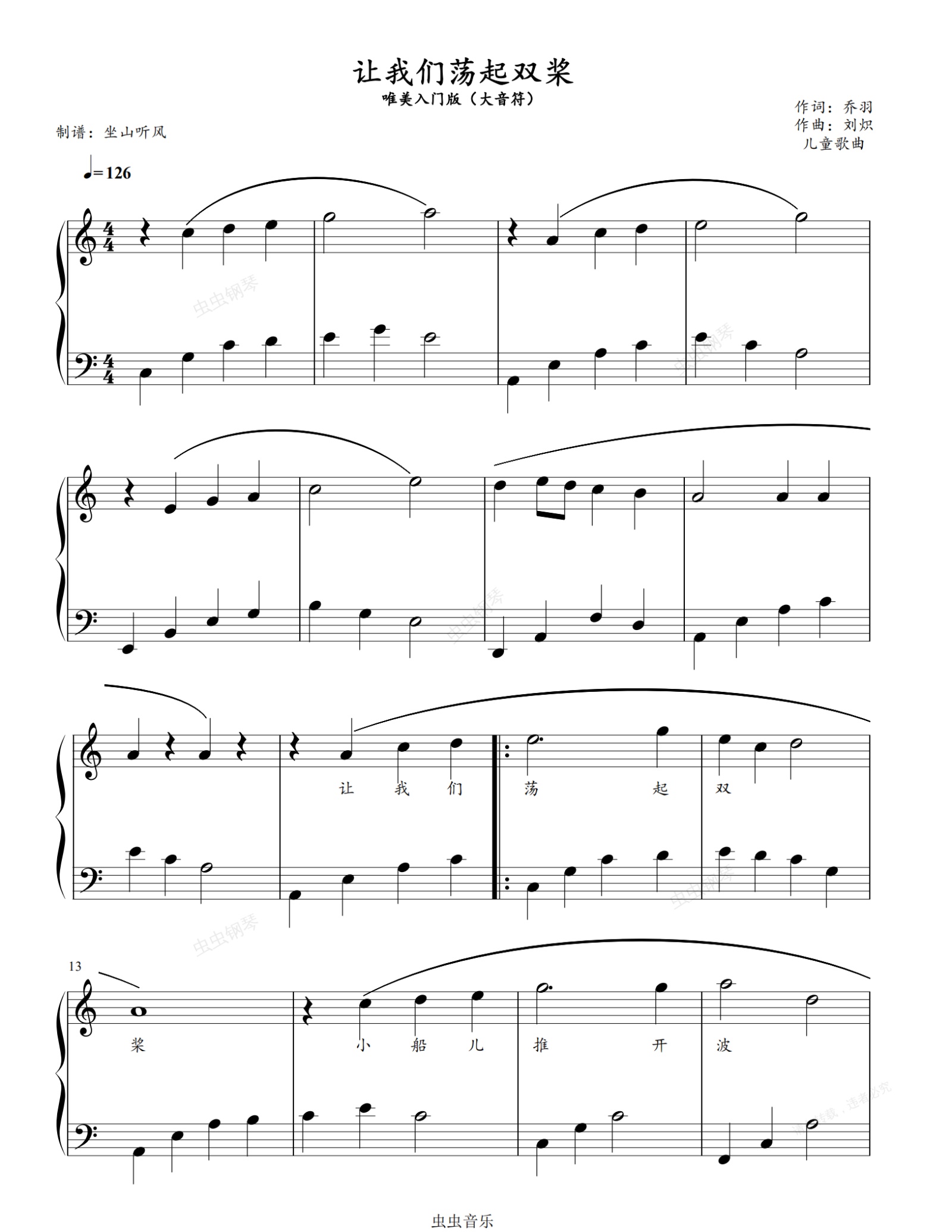 钢琴谱:让我们荡起双桨——唯美入门版(大音符)